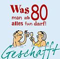 Herzlichen Glückwunsch zum 80. Geburtstag! Nicht genug damit, dass man von sämtlichen Bekannten und Verwandten längst in die Senioren-Schublade gesteckt wurde. Nein, da muss man an seinem Ehrentag auch noch seichte Verslein und rentnertaugliche Geschenke über...