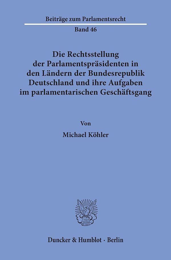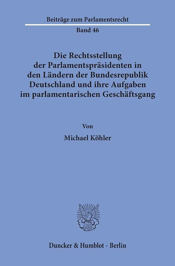 Der Autor setzt die rechtliche Stellung der Parlamentspräsidenten in den 16 Ländern der Bundesrepublik Deutschland zueinander vergleichend in Beziehung mit der Maßgabe, Gemeinsamkeiten, Abweichungen und strukturelle Besonderheiten herauszuarbeiten und zu komme...
