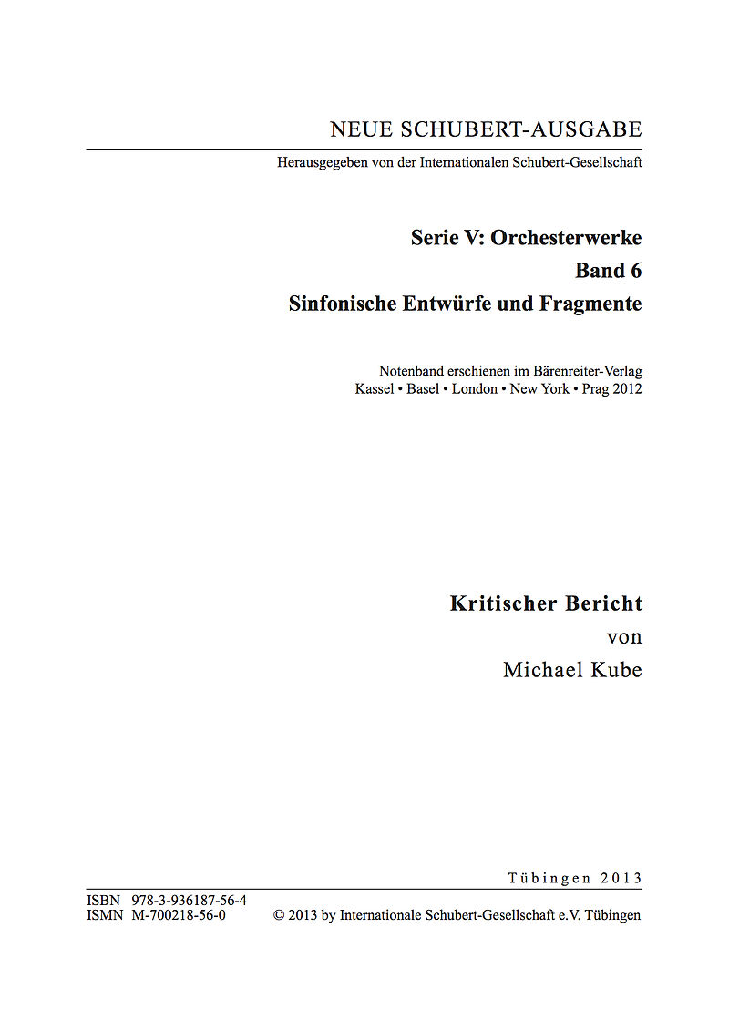 Neue Schubert-Ausgabe. Kritische Berichte / Orchesterwerke / Sinfonische Entwürfe und Fragmente