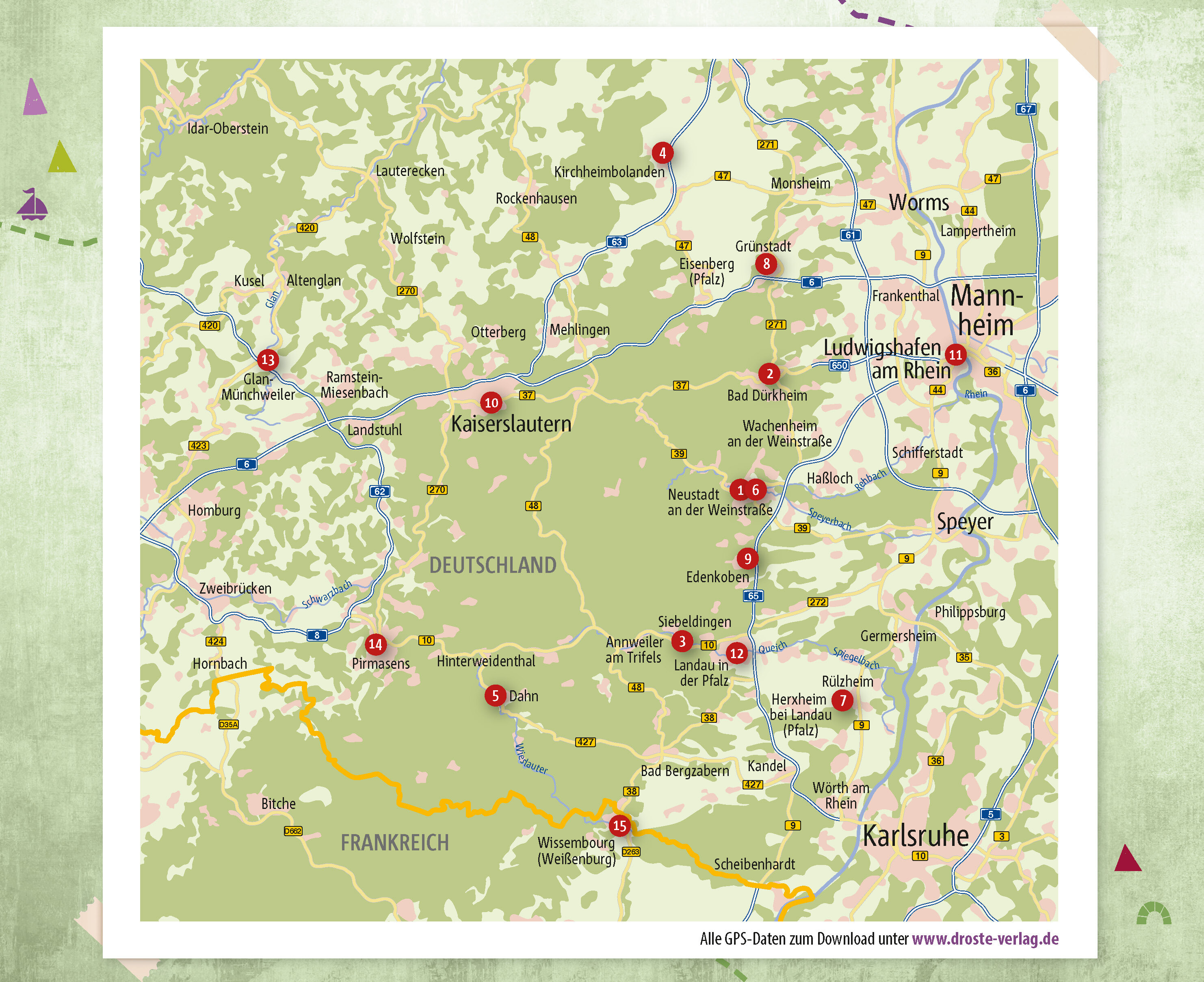 Uffbasse, jetzt wird's gemütlich: Im Radlerparadies Pfalz hat Hektik keinen Platz! Ohne Eile radelt man auf Premiumwegen zwischen Wein und Rhein und träumt vom Blütenmeer der Mandelbäume. Am Horizont winkt der Donnersberg über weite Felder und der Pfälzerwald ...