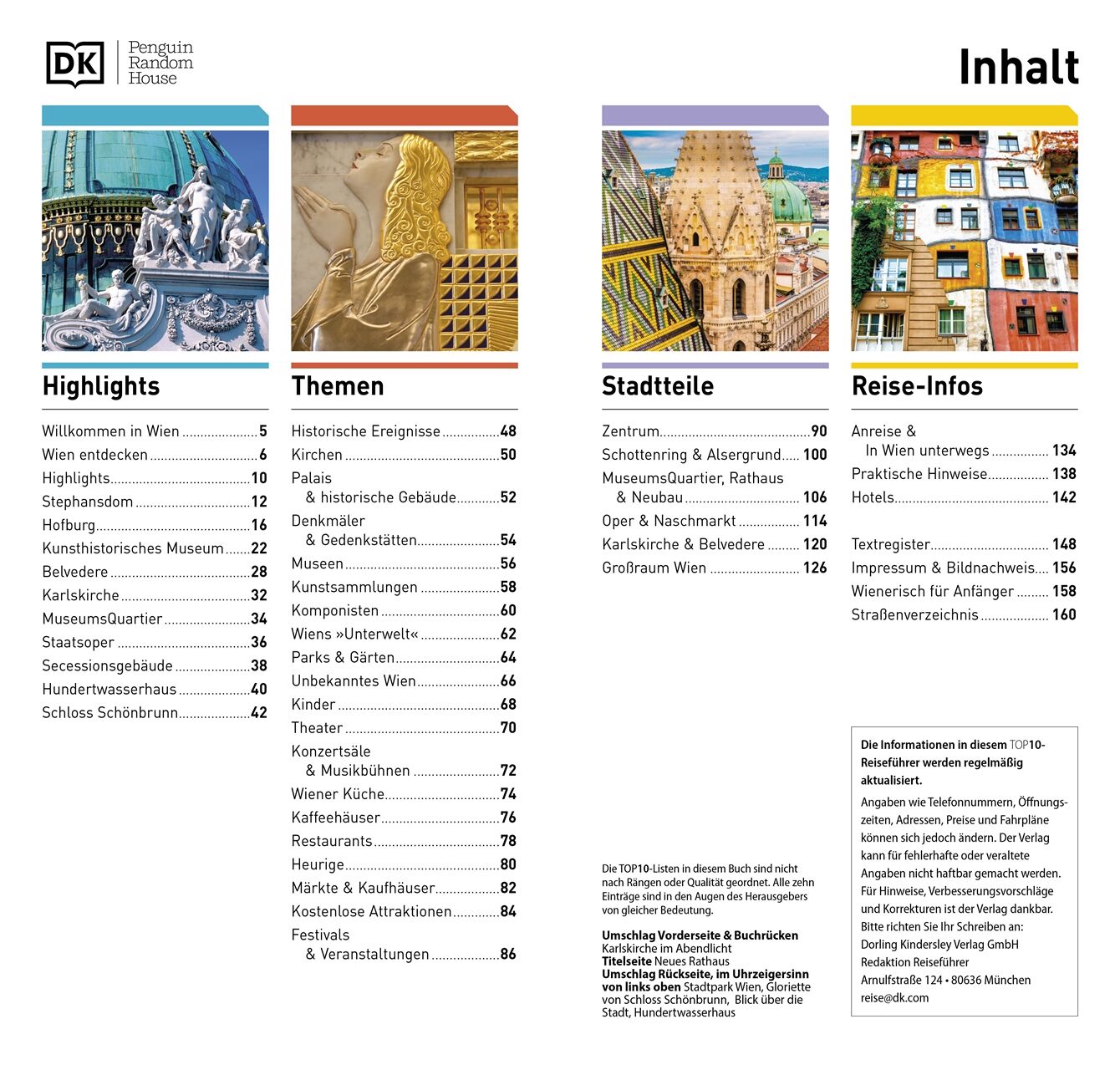 Imposante historische Gebäude und beschauliche Plätze im Zentrum Wiens oder das laute, bunte Treiben auf dem Naschmarkt - im TOP10 Wien-Reiseführer werden die einzelnen Stadtteile von Wien übersichtlich und ausführlich porträtiert. Stimmungsvolle Fotos und detaillierte Stadtteil-Karten zeigen berühmte Sehenswürdigkeiten, charmante Stadtviertel sowie Restaurant-, Shopping- oder Tourenvorschläge auf einen Blick.