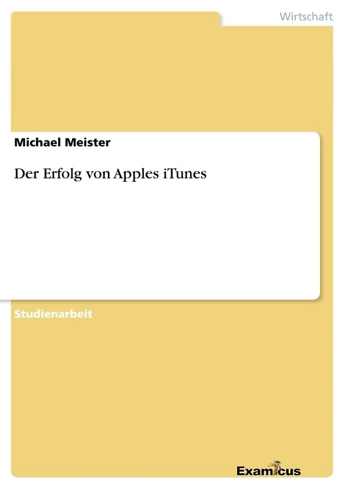 Studienarbeit aus dem Jahr 2005 im Fachbereich BWL - Sonstiges, Note: 1.7, Hochschule Karlsruhe - Technik und Wirtschaft, Sprache: Deutsch, Abstract: Wie setzt sich iTunes von anderen Anbietern ab, was ist der Unterschied von dem iTunes Modell zu anderen Downl...