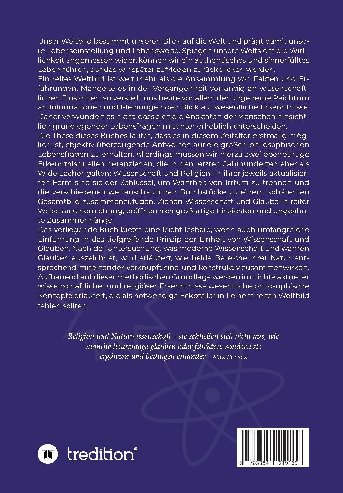 Die These dieses Buches lautet, dass es in diesem Zeitalter erstmalig möglich ist, objektiv überzeugende Antworten auf die großen philosophischen Lebensfragen zu erhalten. Allerdings müssen wir hierzu zwei ebenbürtige Erkenntnisquellen heranziehen, die in den ...
