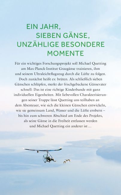 Für ein wichtiges Forschungsprojekt soll Michael Quetting, Laborleiter am Max-Planck-Institut, Graugänsen beibringen, ihm und seinem Ultraleichtflugzeug durch die Lüfte zu folgen. Doch zunächst heißt es: brüten. Als schließlich sieben Gänschen schlüpfen, bedeu...