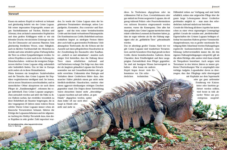 Zweifelsohne gehören diese Echsen (Iguana iguana) zu den prachtvollsten und zugleich beliebtesten Terrarientieren. Zu Recht, denn ihr dinosauriaähnliches, eindrucksvolles Äußeres einerseits, ihr umgängliches Wesen und das interessante Verhalten andererseits ma...