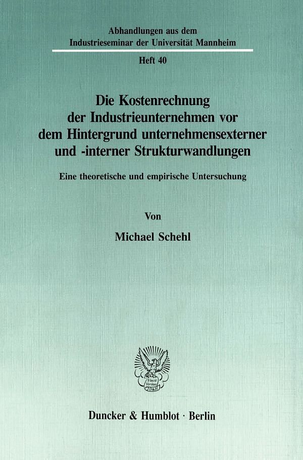 Die Kostenrechnung der Industrieunternehmen vor dem Hintergrund unternehmensexterner und -interner Strukturwandlungen.