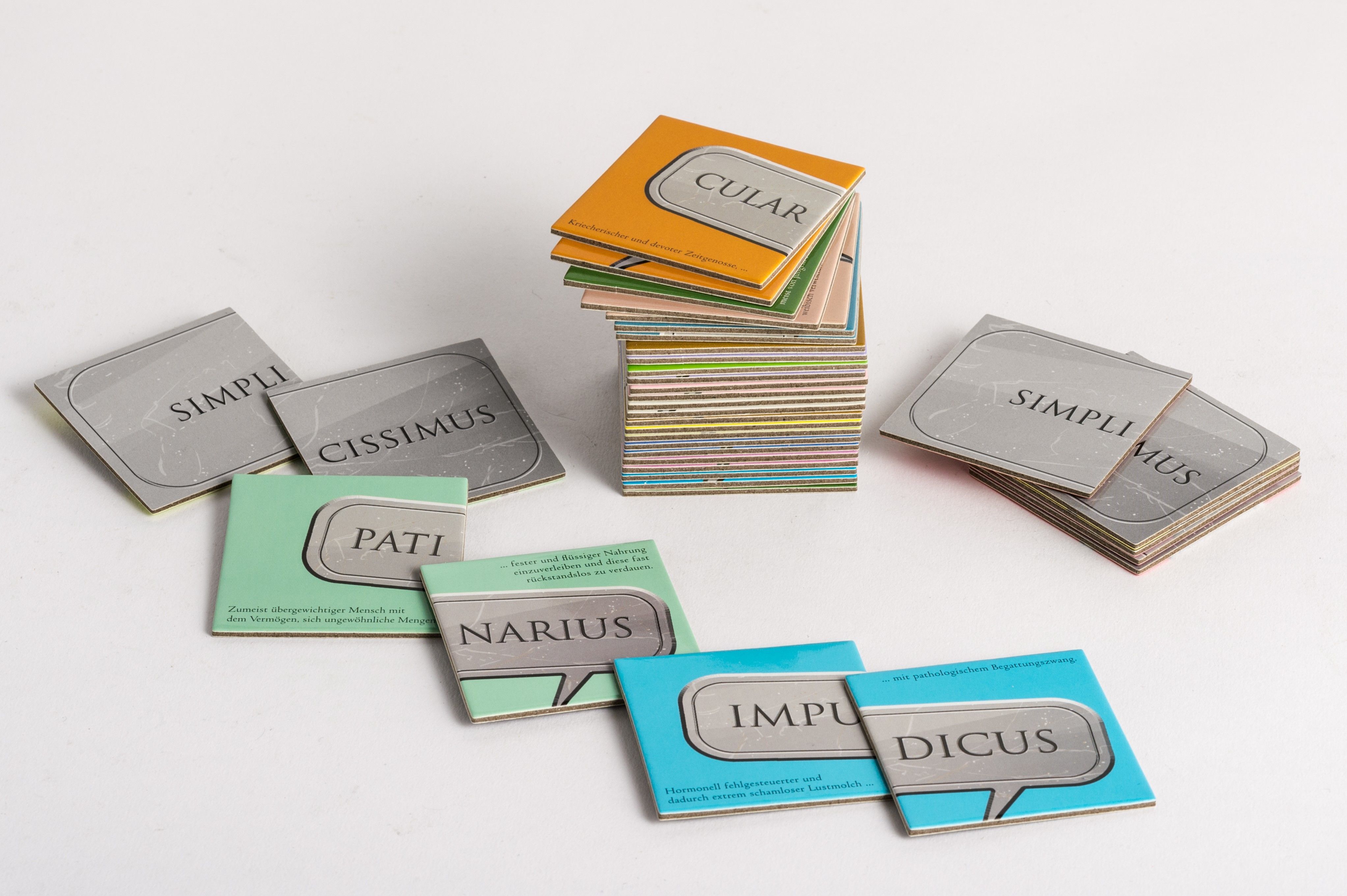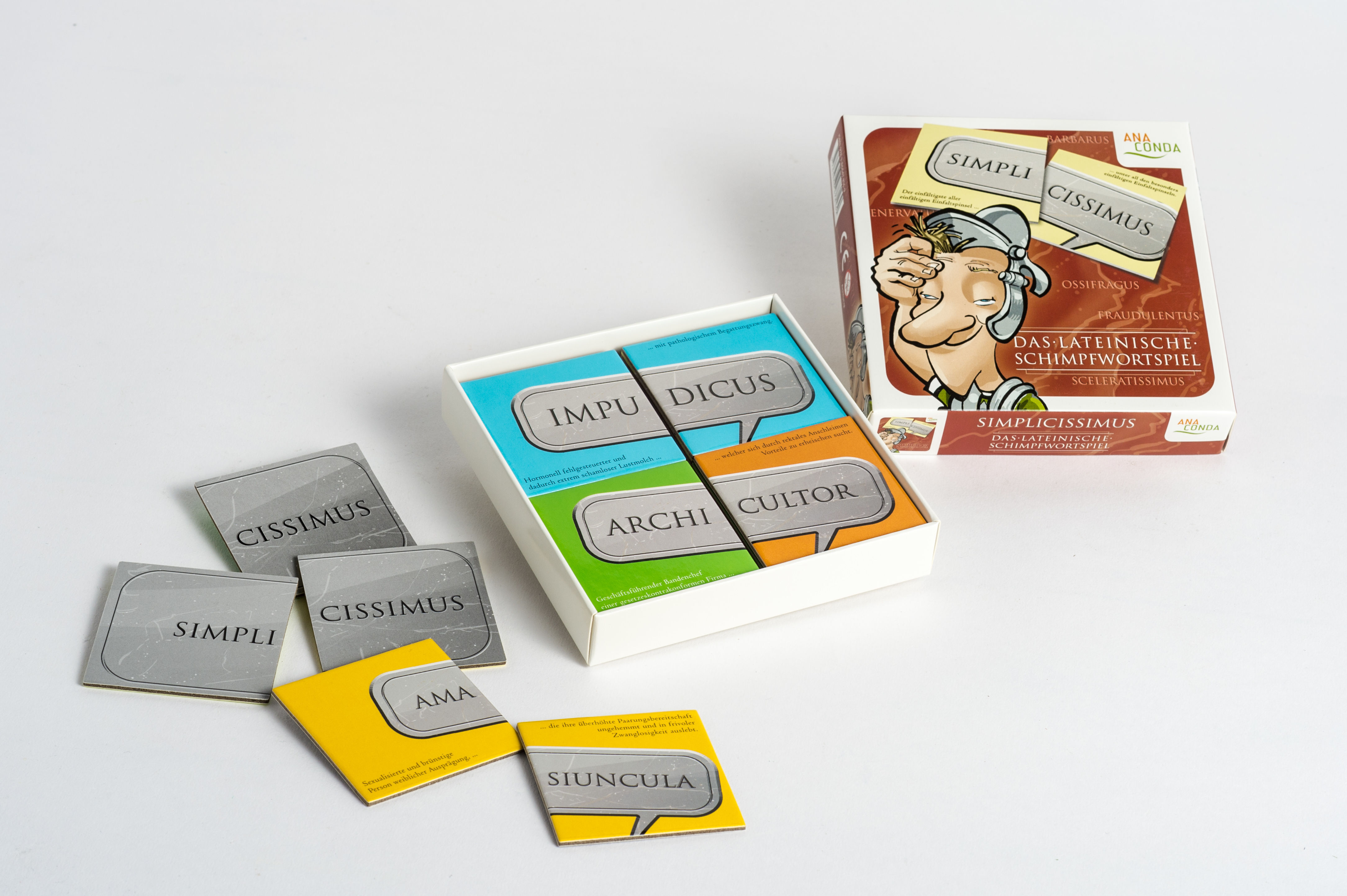Memo-Spiel mit lateinischen Schimpfwörtern Auch die alten Römer konnten schimpfen, schelten und vom Leder ziehen. Deshalb folgt auf all die andern jetzt das neue lateinische Schimpfwortspiel! Ob Barbarus, Homunculus, Miraculus, Patinarius oder Simplicissimus h...