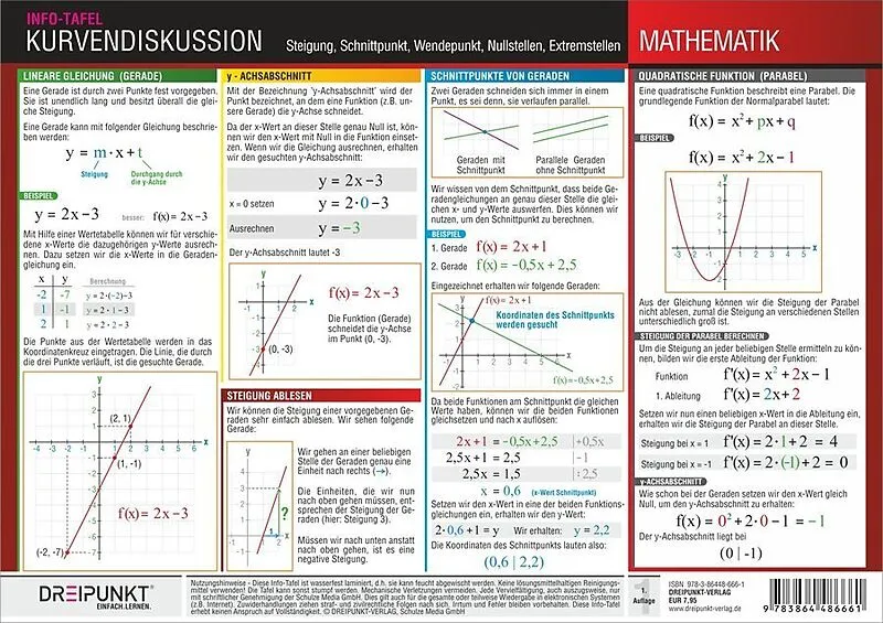 Mit dem Begriff 'Kurvendiskussion' wird die Untersuchung eines Graphen beschrieben. Aber wie geht man dabei am besten vor? Welche Schlüsse bezüglich des Graphen kann ich ziehen, wenn z.B. die zweite Ableitung an der untersuchten Stelle kleiner als Null ist? Mi...
