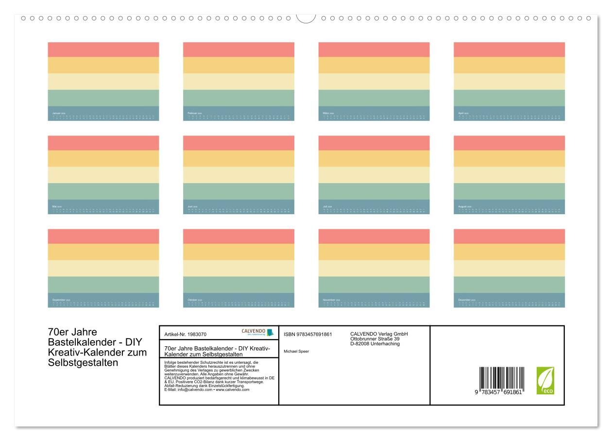 70er Jahre Bastelkalender - DIY Kreativ-Kalender zum Selbstgestalten (hochwertiger Premium Wandkalender 2026 DIN A2 quer), Kunstdruck in Hochglanz
