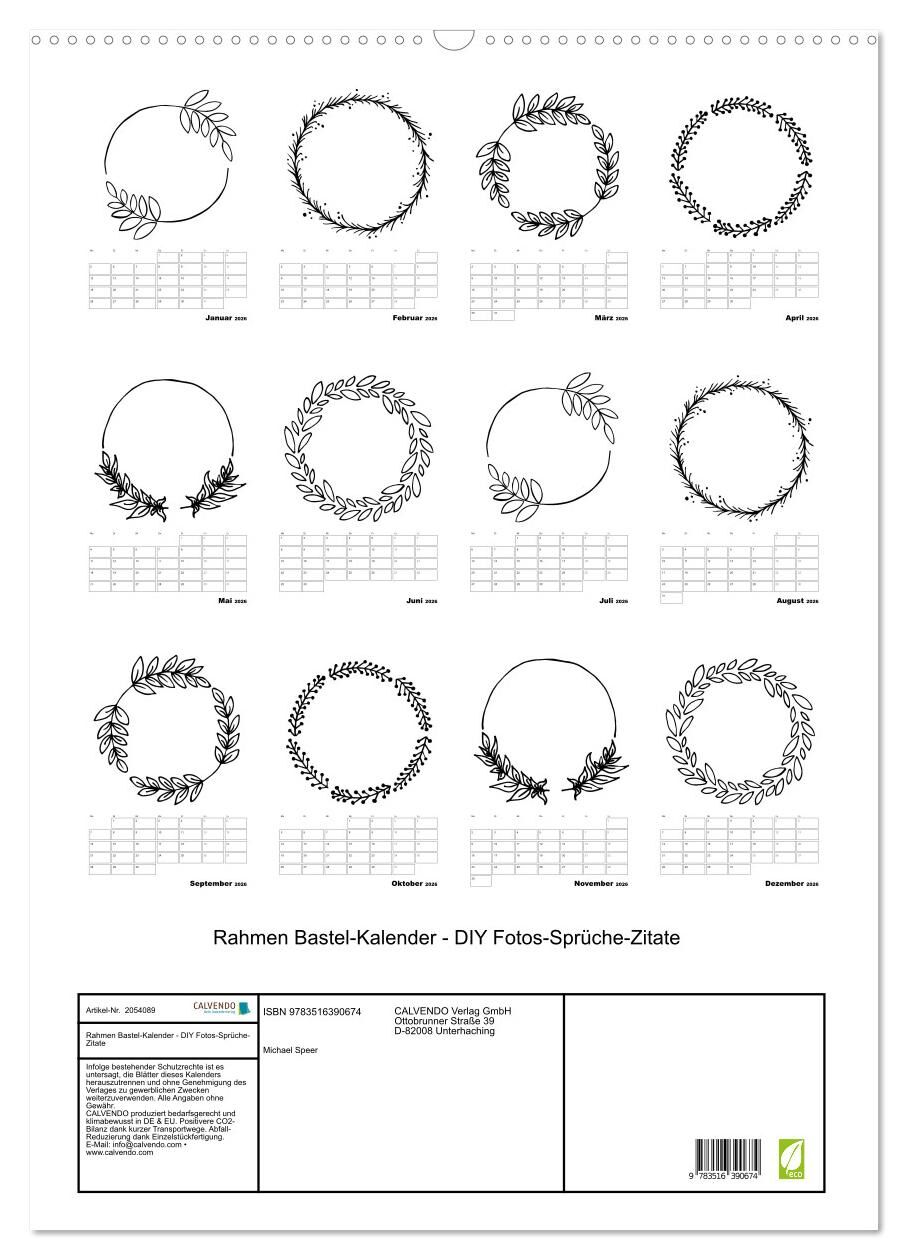 Rahmen Bastel-Kalender - DIY Fotos-Sprüche-Zitate (Wandkalender 2026 DIN A2 hoch), CALVENDO Monatskalender