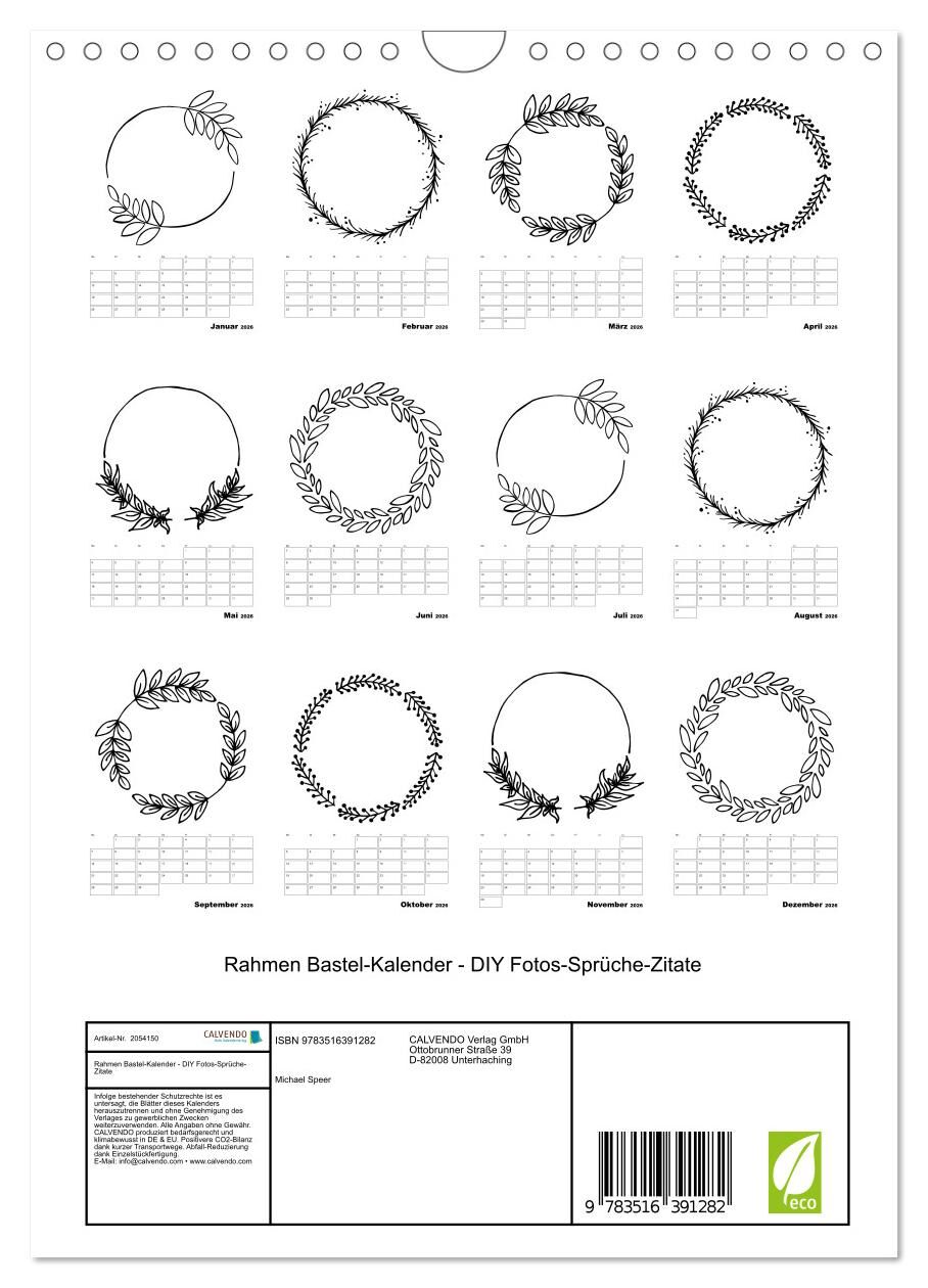 Rahmen Bastel-Kalender - DIY Fotos-Sprüche-Zitate (Wandkalender 2026 DIN A4 hoch), CALVENDO Monatskalender