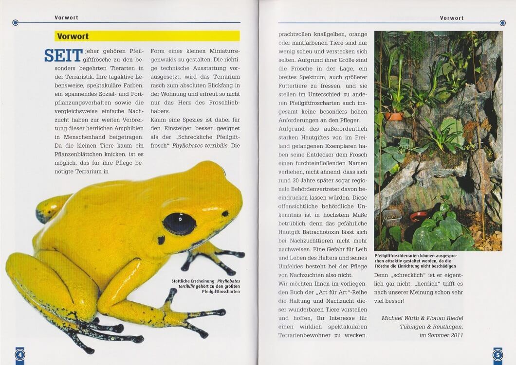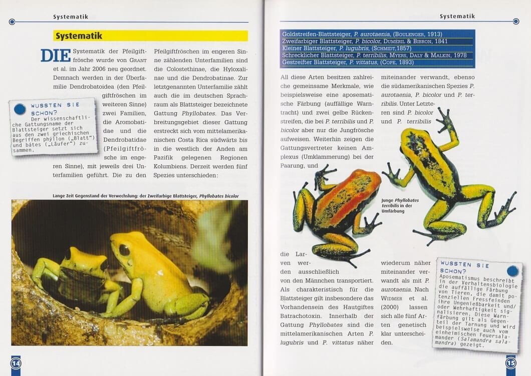 Ein kleiner Frosch mit vielen Namen. Neben Schrecklicher Pfeilgiftfrosch kennt man ihn auch als Schrecklicher Giftfrosch, Schrecklicher Blattsteiger, Gelber Blattsteiger, Goldener Giftfrosch, Zitronengelber Blattsteiger oder Goldener Blattsteiger. Aber nur der...