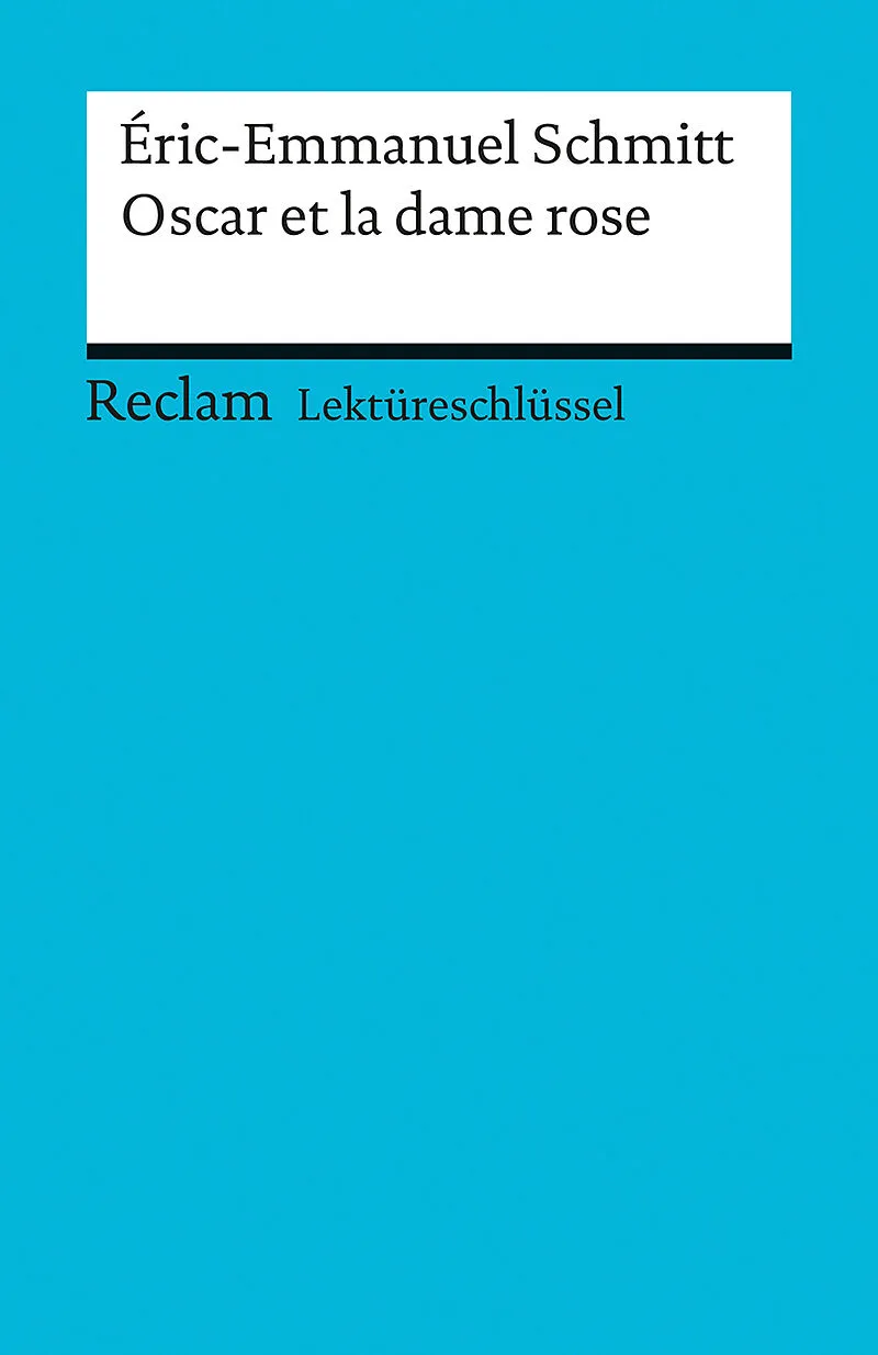 Sie suchen Interpretationen, Erläuterungen oder eine Inhaltsangabe zu Éric-Emmanuel Schmitts »Oscar et la dame rose«? Reclams Lektüreschlüssel bieten all das und noch mehr und helfen beim Referat, beim Lernen vor der Klassenarbeit oder bei der Prüfungsvorbere...
