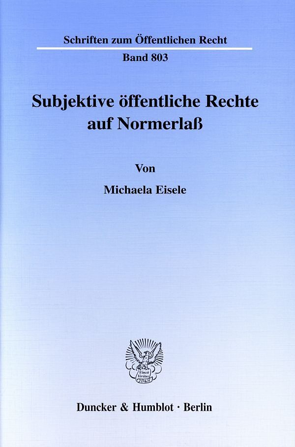 Inhaltsübersicht: Erster Teil: Einführung: Motiv und Problemschwerpunkte der Untersuchung - Terminologie und Eingrenzung des Themas - Aufbau der Untersuchung - Zweiter Teil: Das subjektive öffentliche Recht: Die Anerkennung des subjektiven öffentlichen Rechts - Die Lehre vom subjektiven öffentlichen Recht im Verwaltungsrecht - Die Grundrechte als subjektive öffentliche Rechte - Dritter Teil: Normerlaßansprüche in Rechtsprechung und Literatur: Fallgestaltungen - Subjektive öffentliche Rechte auf Normerlaß in der Rechtsprechung - Diskussionsstand in der Literatur und kritische Würdigung - Vierter Teil: Zusammenfassung und Ausblick - Literaturverzeichnis