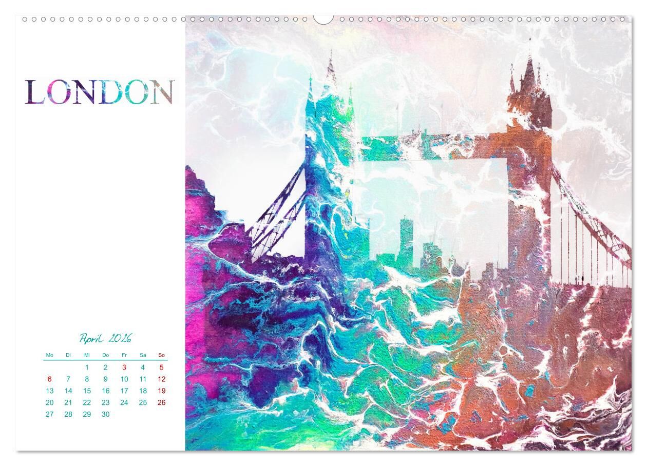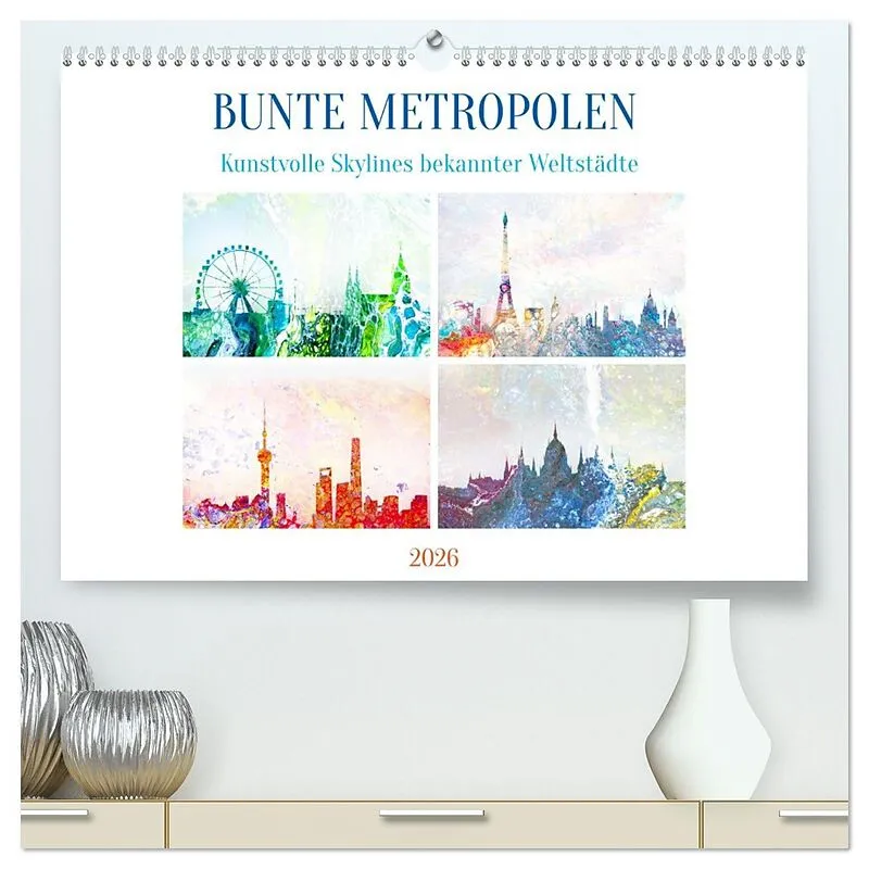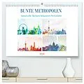 Bunte Metropolen - kunstvolle Skylines bekannter Weltstädte (hochwertiger Premium Wandkalender 2026 DIN A2 quer), Kunstdruck in Hochglanz