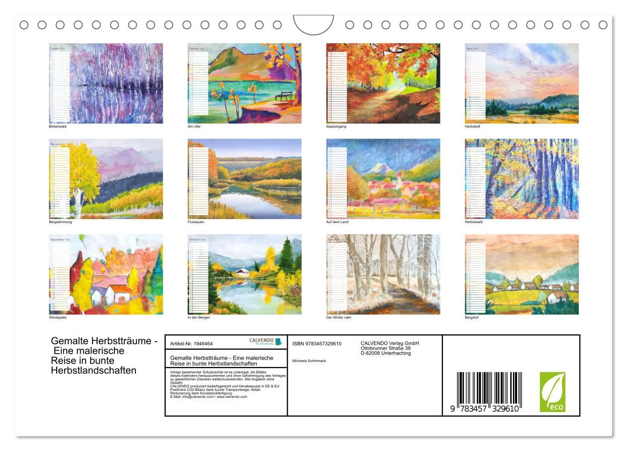 Gemalte Herbstträume - Eine malerische Reise in bunte Herbstlandschaften (Wandkalender 2026 DIN A4 quer), CALVENDO Monatskalender