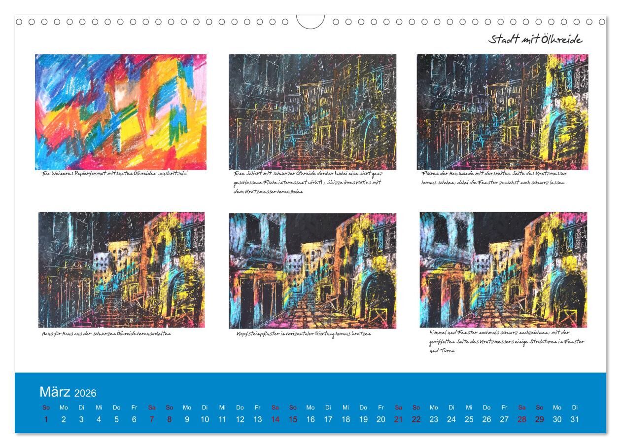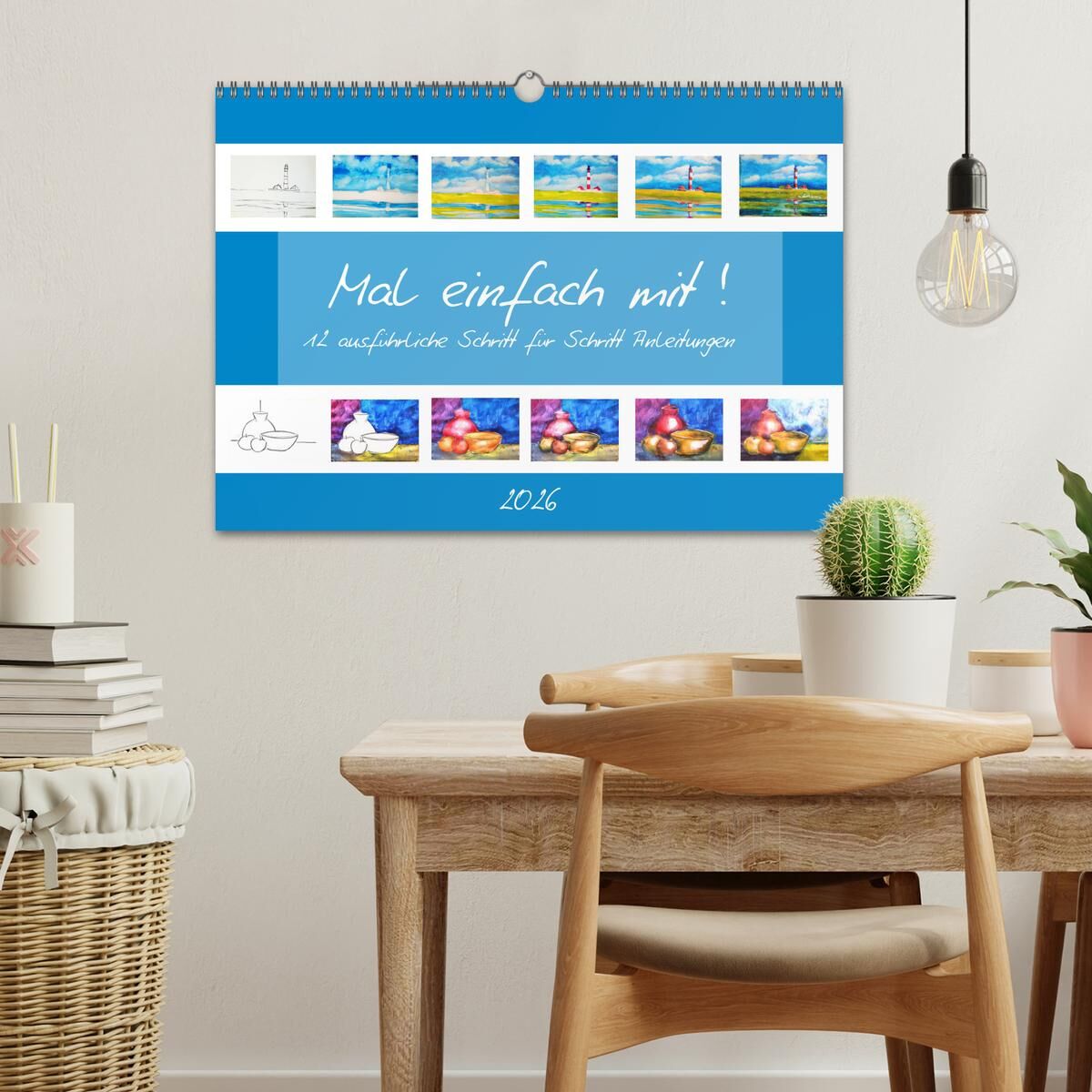 Mal einfach mit ! 12 ausführliche Schritt für Schritt Anleitungen (Wandkalender 2026 DIN A3 quer), CALVENDO Monatskalender