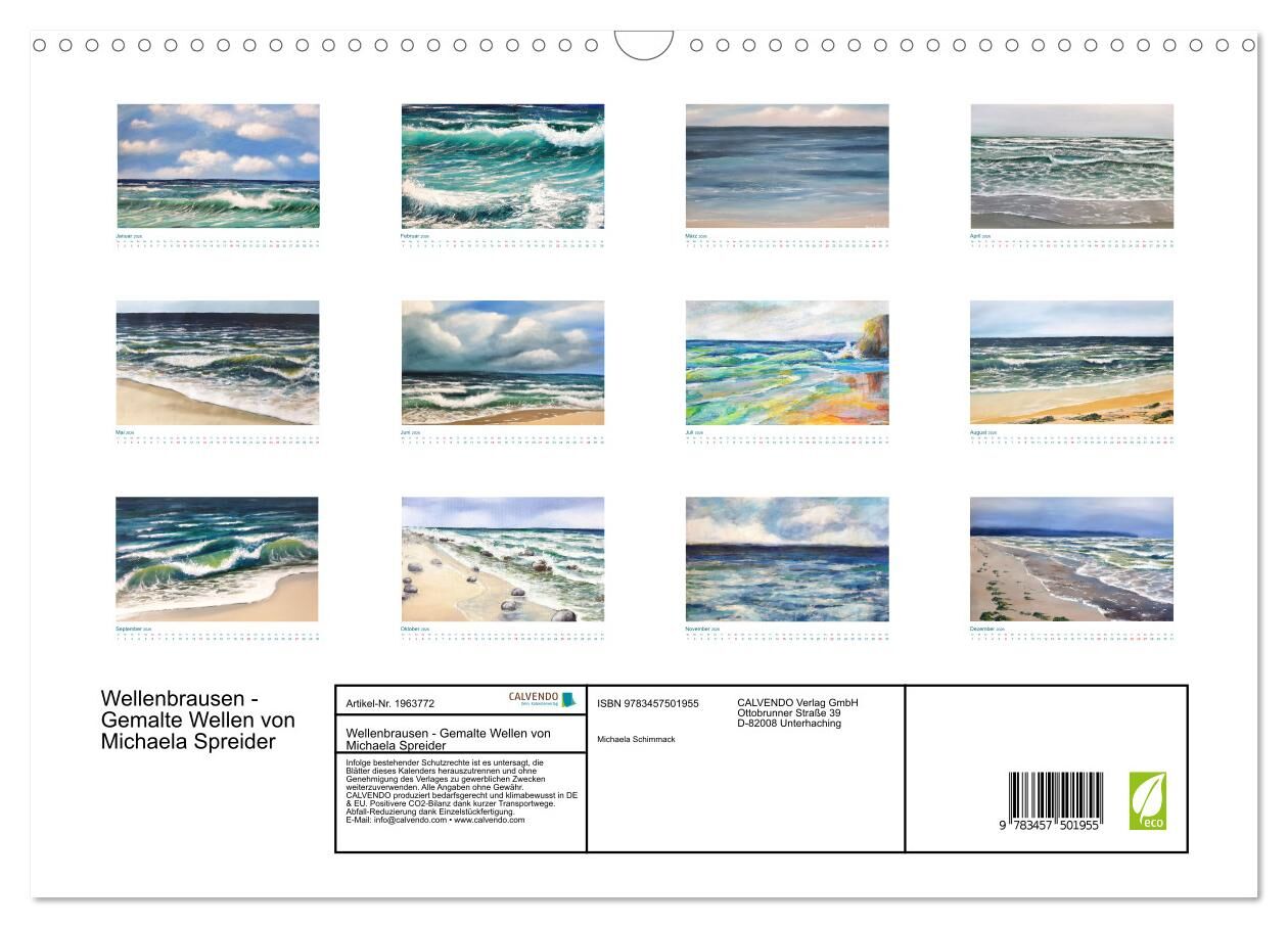 Wellenbrausen - Gemalte Wellen von Michaela Spreider (Wandkalender 2026 DIN A3 quer), CALVENDO Monatskalender