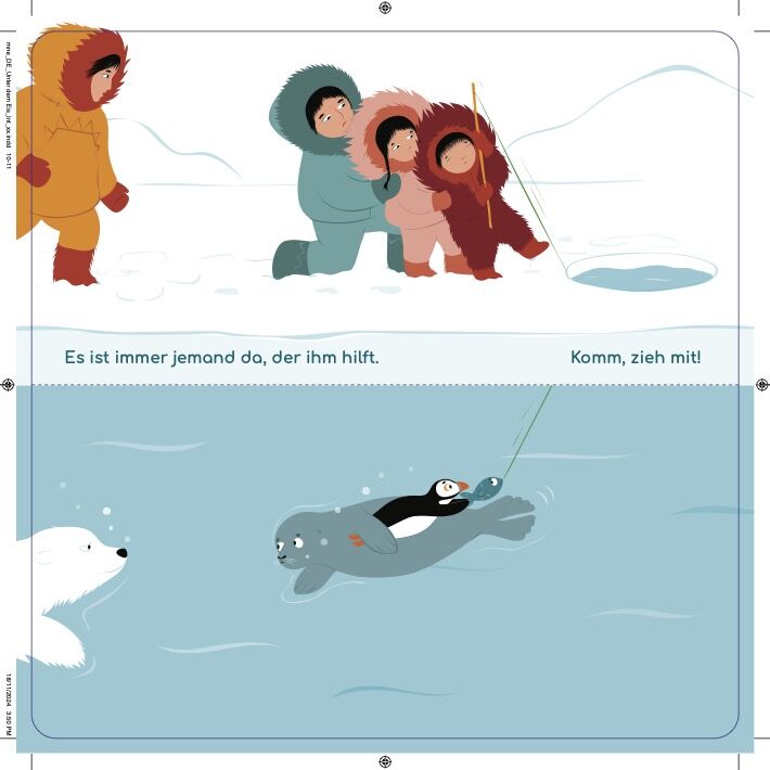 Auf dem Eis: ein Junge, der angelt. Unter dem Eis: ein Fisch, der anbeißt. Beide wollen nicht aufgeben, beide bekommen tatkräftige Unterstützung: Der Junge und seine Freunde ziehen mit aller Kraft an der Angel. Der Fisch und seine Freunde ziehen mit aller Kraf...