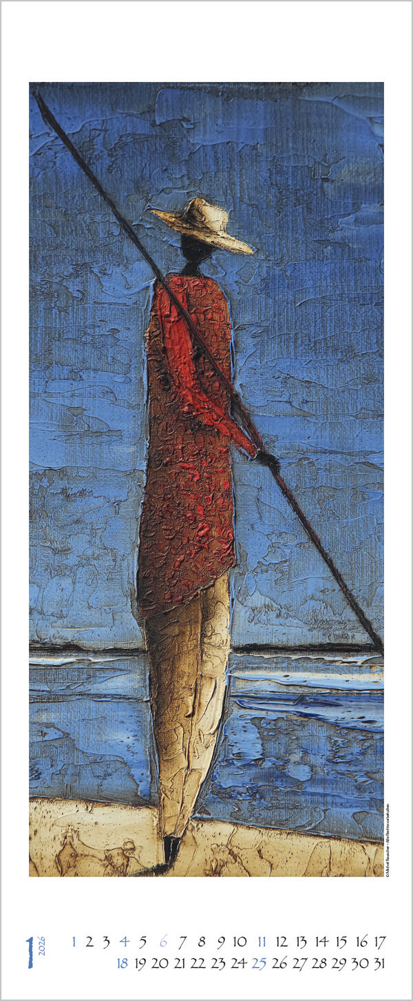 Der französische Maler Michel Rauscher wirft mit seinen reduzierten Menschendarstellungen einen ganz individuellen Blick auf den afrikanischen Kontinent. Seine modernen Impressionen versprühen Leichtigkeit und Eleganz und machen den Kalender zu einem dekorati...