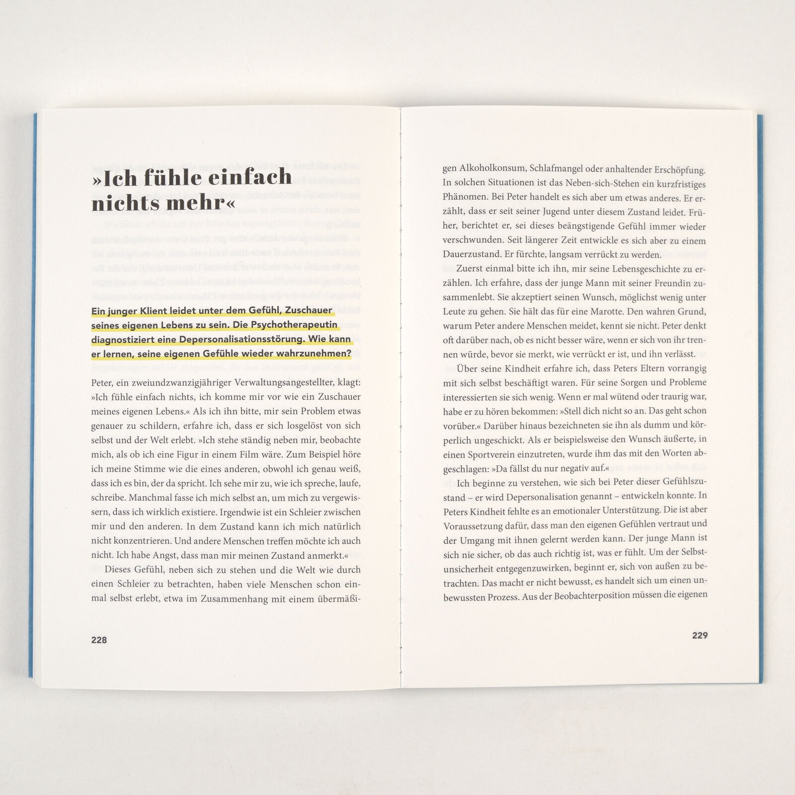 Wolfgang Schmidbauer ist Psychologe, Psychoanalytiker und Bestseller-Autor. Er gründete 1972 mit Kollegen ein Institut für analytische Gruppendynamik und Familientherapie, wenig später die Münchner Arbeitsgemeinschaft für Psychoanalyse. 1977 prägte er mit dem Bestseller »Die hilflosen Helfer« den Begriff des Helfersyndroms. Heute arbeitet er in eigener Praxis in München. Michel Streich illustriert seit 2015 die Kolumne »Therapiestunde« in Psychologie Heute. Geboren in Westfalen, begann er seine Karriere als Illustrator in London, zog später nach Australien und lebt nun in einem Nationalpark in der Nähe von Sydney. Er arbeitet hauptsächlich als Zeichner für Zeitschriften- und Buchverlage und ist Autor mehrerer Kinderbücher. michelstreich.com Dr. med. Susanne Altmeyer ist Chefärztin der Klinik und Tagesklinik für Psychosomatische Medizin, Psychotraumatologie und EMDR im Gezeiten Haus Schloss Eichholz, Wesseling. Sie ist u. a. Autorin von »EMDR-Intensivtherapie«, Klett-Cotta 2024. Dr. phil Volkmar Baulig ist Diplom-Pädagoge, Förderlehrer und Gestalttherapeut mit zahlreichen Veröffentlichungen über den pädagogischen Umgang mit schwierigen Kindern, z. B. »Der Kinderwelttest«, Beltz Test 2006. Lehraufträge an fünf verschiedenen Hochschulen. Wiltrud Brächter ist Kinder- und Jugendlichenpsychotherapeutin, systemische Therapeutin (SG) und Supervisorin in Köln. 2022 erschien »Einführung in die systemische Sandspieltherapie« bei Carl-Auer. geschichten-im-sand.de Dr. Michael Broda, Diplom-Psychologe, ist Psych. Psychotherapeut, Supervisor und Lehrtherapeut in Verhaltenstherapie,Gründungsherausgeber der Zeitschrift »Psychotherapie im Dialog« sowie Mitherausgeber des Lehrbuchs »Praxis der Psychotherapie«, 6. Aufl., Thieme 2020. Dr. med. Victor Chu, Diplom-Psychologe, ist Psychotherapeut und Tai-Chi-Lehrer und hat zahlreiche Bücher geschrieben, u. a. »Briefe an einen jungen Therapeuten«, Schattauer 2021. vchu.de Charlotte de Boer arbeitete im Projekt »I Can Change« der Medizinischen Hochschule Hannover. Sie promovierte zu Alteration pädophiler Täter im Hell- und Dunkelfeld. Derzeit ist sie als Psych. Psychotherapeutin in eigener Praxis tätig. Anne Dullenkopf ist Diplom-Sozialpädagogin und derzeit im letzten Jahr ihrer Ausbildung am AKJP Heidelberg für analytische und tiefenpsychologische Psychotherapie für Kinder und Jugendliche. Sie war u. a. in der Beratung von sozialpädagogischen Familienwohngruppen tätig. Dr. sc. hum. Angelika Eck ist Diplom-Psychologin und arbeitet in eigener Praxis in Karlsruhe im Bereich Paartherapie, Sexualtherapie und Psychotherapie. Sie ist als Supervisorin, Lehrtherapeutin und Vortragende tätig. 2016 erschien »Der erotische Raum« bei Carl Auer. angelikaeck.de Gabriele Eßing ist Diplom-Psychologin und Psych. Psychotherapeutin in Berlin. Ihr Buch »Wie Psychotherapie bei körperlichen Erkrankungen wirkt« erschien 2023 bei Reinhardt. psychotherapieam-schlachtensee.de Dr. Eva Frank-Noyon ist Psych. Psychotherapeutin und in eigener Praxis tätig. Sie ist Mitgründerin der Schematherapie-Online-Akademie (STOA) und Mitautorin des Ratgebers »Passt doch. Paarkonflikte verstehen und lösen mit der Schematherapie«, Beltz 2022. Prof. Dr. Wolfgang Hantel-Quitmann war Professor für Klinische Psychologie und Familienpsychologie an der HAW-Hamburg. Er schrieb mehrere Fachbücher zu Partnerschaft und Familie. Zuletzt: »Kafkas Kinder. Das Existenzielle in menschlichen Beziehungen verstehen«, Klett-Cotta 2021. Dr. Burkhard Hofmann ist seit 1991 als Facharzt für psychotherapeutische Medizin und Psychosomatik in eigener Praxis in Hamburg-Harvestehude tätig. 2018 erschien im Droemer Verlag »Und Gott schuf die Angst. Ein Psychogramm der arabischen Seele«. Prof. Dr. Rainer M. Holm-Hadulla ist Professor an der Universität Heidelberg, Facharzt für Psychiatrie, Psychosomatische Medizin und Psychotherapie. Wissenschaftliche und praktische Schwerpunkte sind Beratung, Psychotherapie und Kreativität. Zuletzt erschien »Die kreative Bewältigung von Verzweiflung, Hass und Gewalt«, Psychosozial 2023. holm-hadulla.com Dr. Stefan Junker ist Psych. Psychotherapeut, Lehrtherapeut am Helm-Stierlin-Institut in Heidelberg, Gründer der Online-Selbsthilfe-Plattform couch:now und der Mental-Health-App »Harmony« sowie Autor von »Krise Hirn an« (2018). doktorjunker.de Uwe Kazenmaier ist Stationsleiter der Sozialtherapeutischen Anstalt in der JVA Tegel in Berlin und betreut dort als Gefängnispsychologe inhaftierte Schwerkriminelle. Karoline Klemke, Diplom-Psychologin, arbeitet als Psych. Psychotherapeutin in eigener Praxis in Berlin und ist als forensische Gutachterin tätig. 2023 erschien bei dtv ihr autofiktionales Buch »Totmannalarm«. Andreas Knuf ist Psych. Psychotherapeut mit Praxis in Konstanz sowie Supervisor und in der Fort- und Weiterbildung tätig. Er ist Autor zahlreicher Sachbücher, u. a. »Ruhe da oben! Der Weg zu einem gelassenen Geist«, Arbor 2022. andreas-knuf.de Sandra Knümann, Diplom-Pädagogin, Heilpraktikerin für Psychotherapie, Achtsamkeitslehrerin und Naturtherapeutin; Referentin der Weiterbildung »Achtsamkeitsbasierte Naturtherapie«. Dr. Sandra Konrad ist Diplom-Psychologin und systemische Einzel-, Paar- und Familientherapeutin in privater Praxis in Hamburg. Sie ist Sachbuchautorin, u. a. »Nicht ohne meine Eltern. Wie gesunde Ablösung all unsere Beziehungen verbessert«, Piper 2023. Thorsten Padberg, M. A., Diplom-Psychologe, arbeitet als Psych. Psychotherapeut in eigener Praxis in Berlin. Zuletzt erschien von ihm das Buch »Die Depressions-Falle. Wie wir Menschen helfen, statt sie für krank zu erklären« bei S. Fischer 2021. www.thorstenpadberg.info Dr. Dipl. päd. Sarah Pohl ist systemische Paar- und Familienberaterin, Heilpraktikerin für Psychotherapie, Leitung der Beratungsstelle ZEBRA/BW in Freiburg und Autorin einiger Ratgeber. Zuletzt erschien ihr Buch »Zwischen den Welten«, V&R 2023. Dr. med. Ibrahim