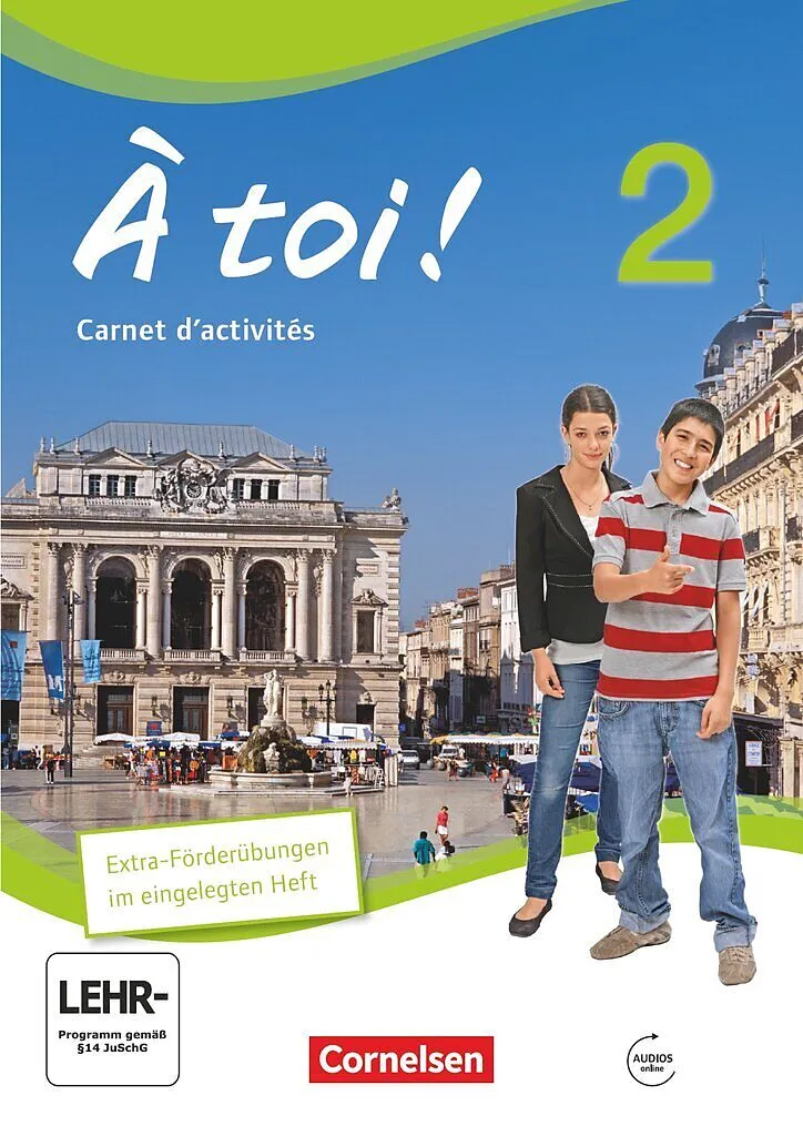 Das kompetenzorientierte Lehrwerk - relevant, authentisch À toi ! , ausgezeichnet als Schulbuch des Jahres 2015, ist jetzt komplett und ab sofort in allen Bänden und mit vollständigem Begleitmaterial verfügbar. Motivierende Übungsvielfalt À toi ! trainiert alle kommunikativen und interkulturellen Kompetenzen sowie die Methodenkompetenz. Jede Unité mündet in eine handlungsorientierte Lernaufgabe. Am Schluss jeder Unité steht eine handlungsorientierte Lernaufgabe. Die fakultativen Exercices supplémentaires liefern weitere Übungsmöglichkeiten. Transparenz Die Unités von À toi ! sind klar aufgebaut. Jede Unité beginnt mit einem Lernzielsticker und endet mit einer Mini-Contrôle zur Selbstüberprüfung. Mündlichkeit À toi ! begeistert durch spielerische Übungen zur Lautschulung mit Liedern, Rap-Songs, Reimen und Zungenbrechern. Modelldialoge und Sprechschemata führen alle zum Erfolg. Differenzierung
