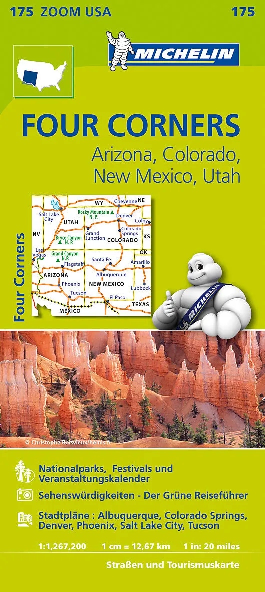 Die Michelin Karte "Four Corners mit Arizona, Colorado, New Mexiko und Utah" im Maßstab 1:1.267.200. Städte und Ausflugsziele detailliert erkunden mit der Michelin Zoom Karte - die neue USA Karte von Michelin lädt zum Reisen ein: ++Verweise auf die meist besuc...