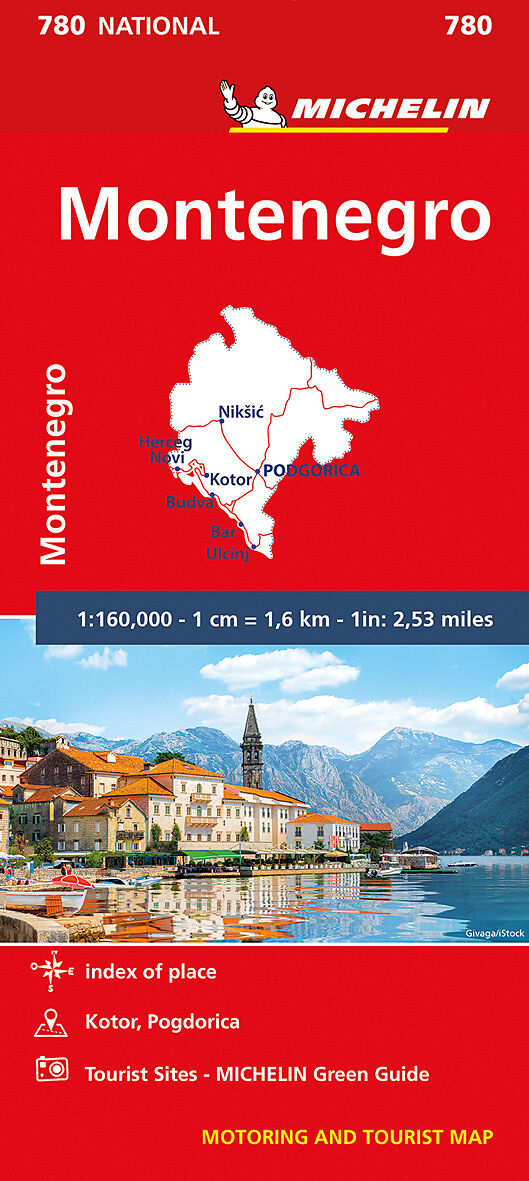 Die neue praktische Michelin Straßenkarte Montenegro im Maßstab 1:160.000. Die neue Straßen- und Tourismuskarte von Michelin für Montenegro. Die ganze Karte wird auf der Vorderseite der Karte dargestellt. Zusätzlich gibt es ein Ortsverzeichnis, Entfernungstabe...