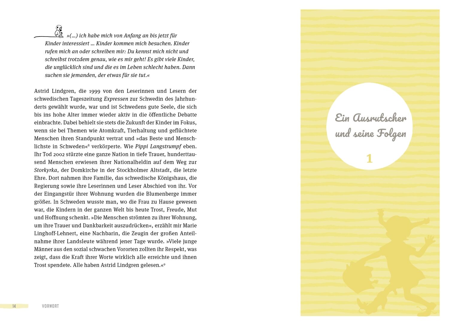 Mit Zivilcourage, Liebe und Humor hat sie stets deutliche Worte für die Dinge gefunden, die ihr am Herzen lagen. Sie setzte sich nicht nur für die Rechte von Kindern und Tieren ein, sondern war insgesamt eine überzeugte Humanistin. Vor allem aber ist sie die schwedische Schriftstellerin. Sie hat uns Kinderbücher geschenkt, die die Welt besser machen und die Leserinnen und Leser an die Zukunft glauben lassen. Mit ihrer Erzählkunst setzte sie neue Maßstäbe, stellte wie Pippi gängige Meinungen infrage und Regeln auf den Kopf. 1945 erschien mit Pippi Langstrumpf ihr Debüt, 1981 endete mit ihrem letzten Buch Ronja Räubertochter ihr Schaffen. Zwischen diesen beiden starken Mädchen liegen eine Reihe von Geschichten wie Michel aus Lönneberga, Wir Kinder aus Bullerbü oder Madita, mit denen sie den Weg für den internationalen Erfolg schwedischer Kinderliteratur ebnete.