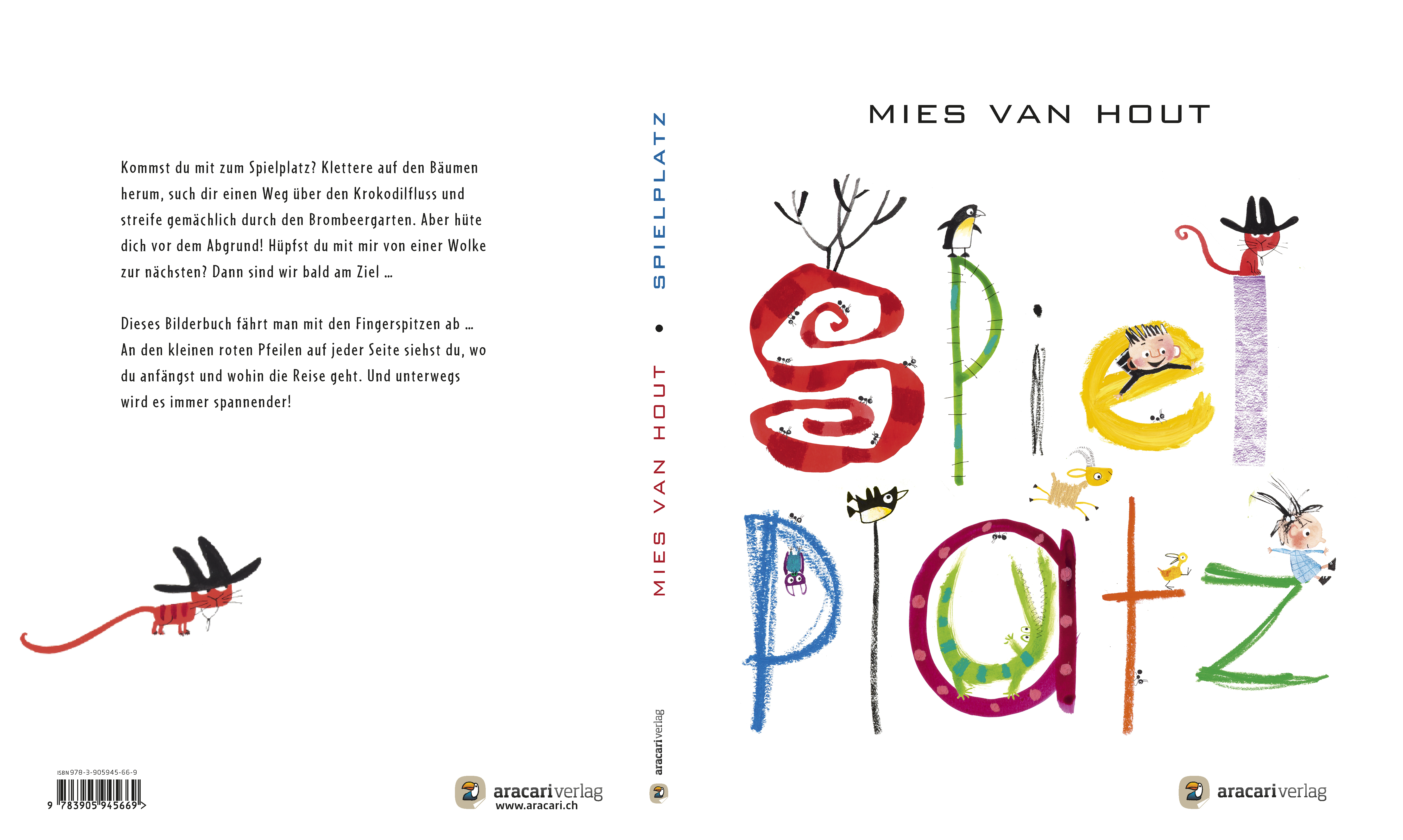Dieses Bilderbuch fährt man mit den Fingerspitzen ab. An den kleinen roten Pfeilen auf jeder Seite sieht man, wo man anfängt und wohin die Reise geht. Unterwegs zum Spielplatz wird es immer spannender man klettert über Bäume, sucht einen Weg über den Krokodilf...
