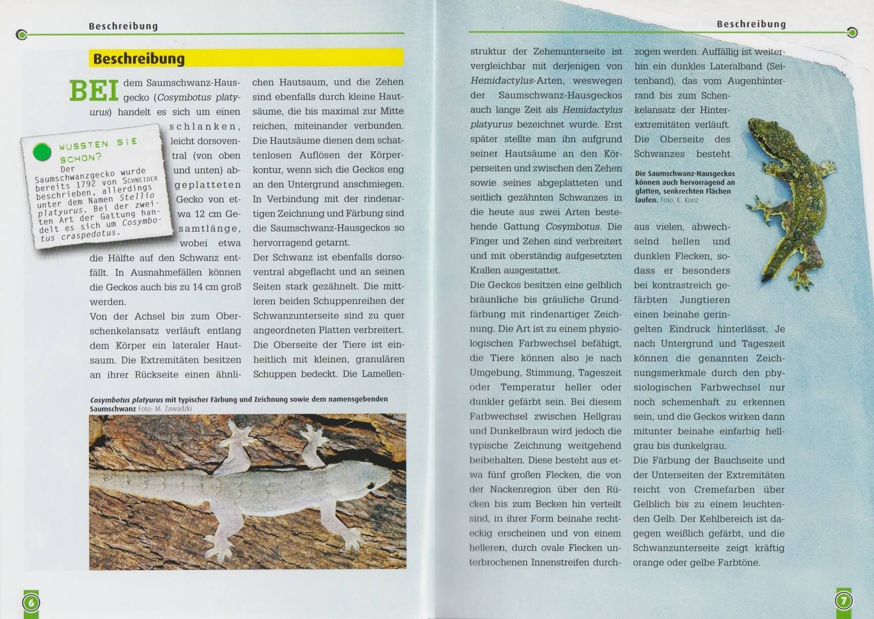 Die Eigenschaften des Saumschwanz-Hausgeckos (auch Asiatischer Hausgecko genannt) machen ihn zu einem idealen Terrarienpflegling, der sich leicht halten und vermehren lässt und damit selbst für Einsteiger empfehlenswert ist. Das Tier zeichnet sich als munter u...