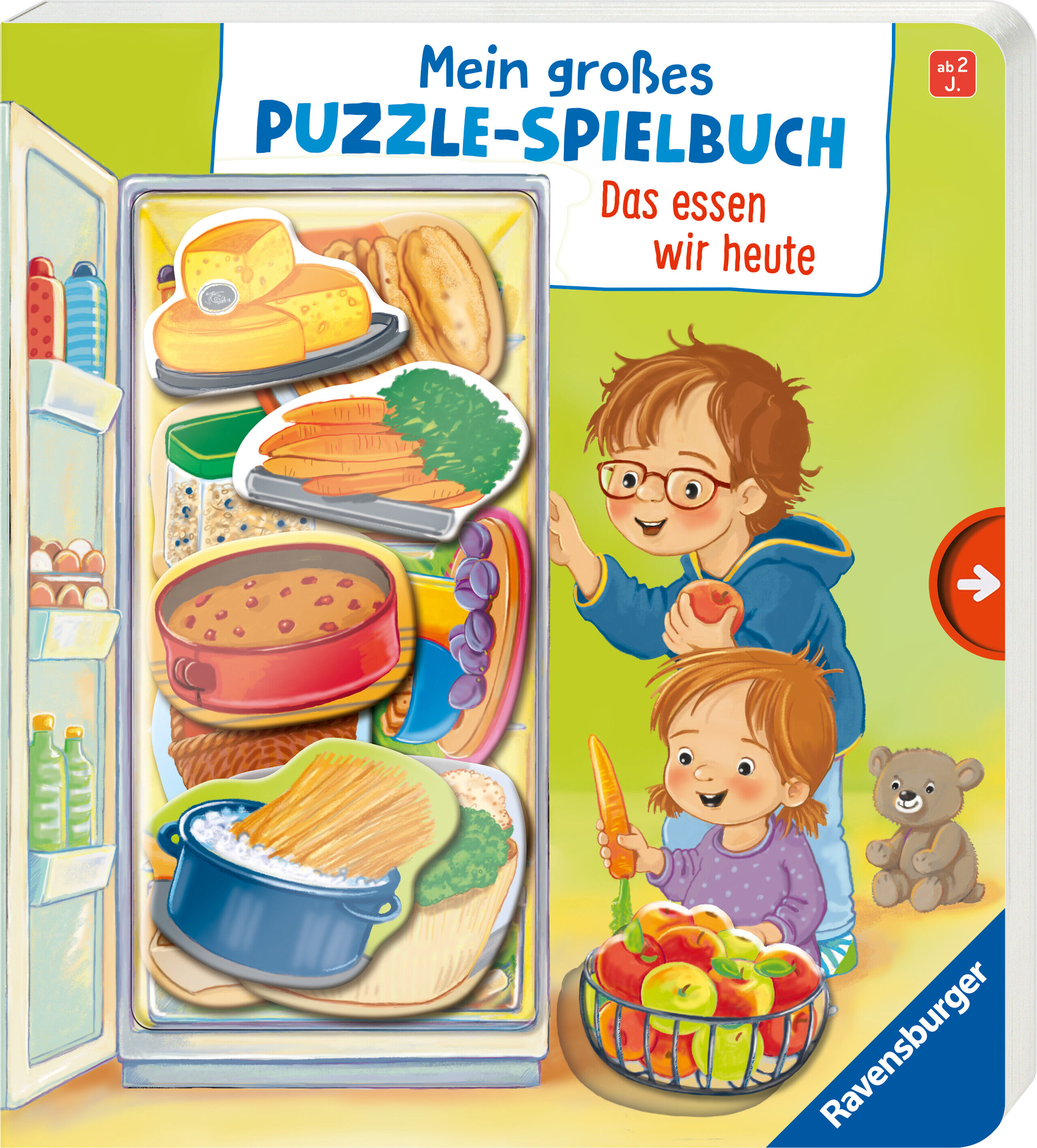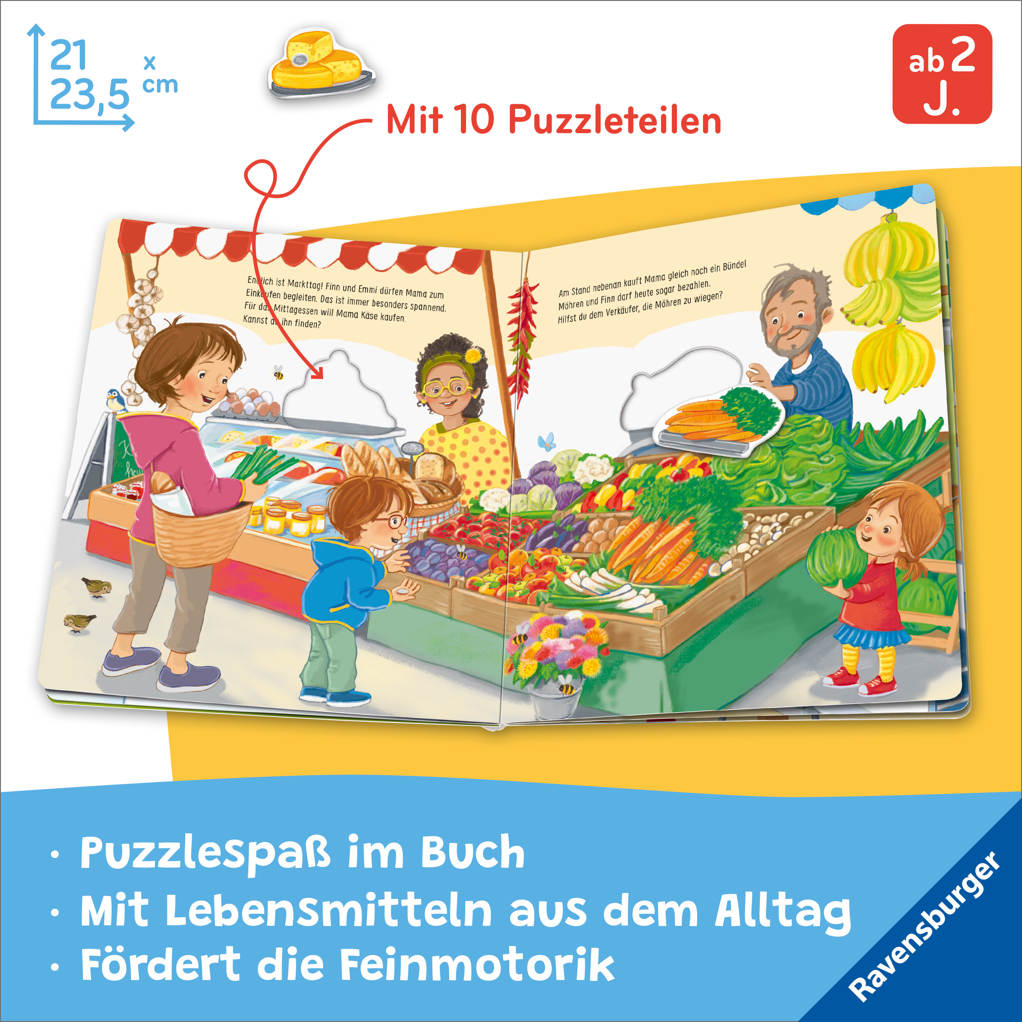 Großer Puzzlespaß für kleine Hände Was essen wir heute? Zehn stabile Puzzleteile zum Thema Essen laden zum Zuordnen und Einsetzen ein. Während Papa Äpfel vom Baum pflückt, machen Emmi und Teddy ein Picknick mit Keksen und Saft. Mit Mama wollen Emmi und ihr Bru...
