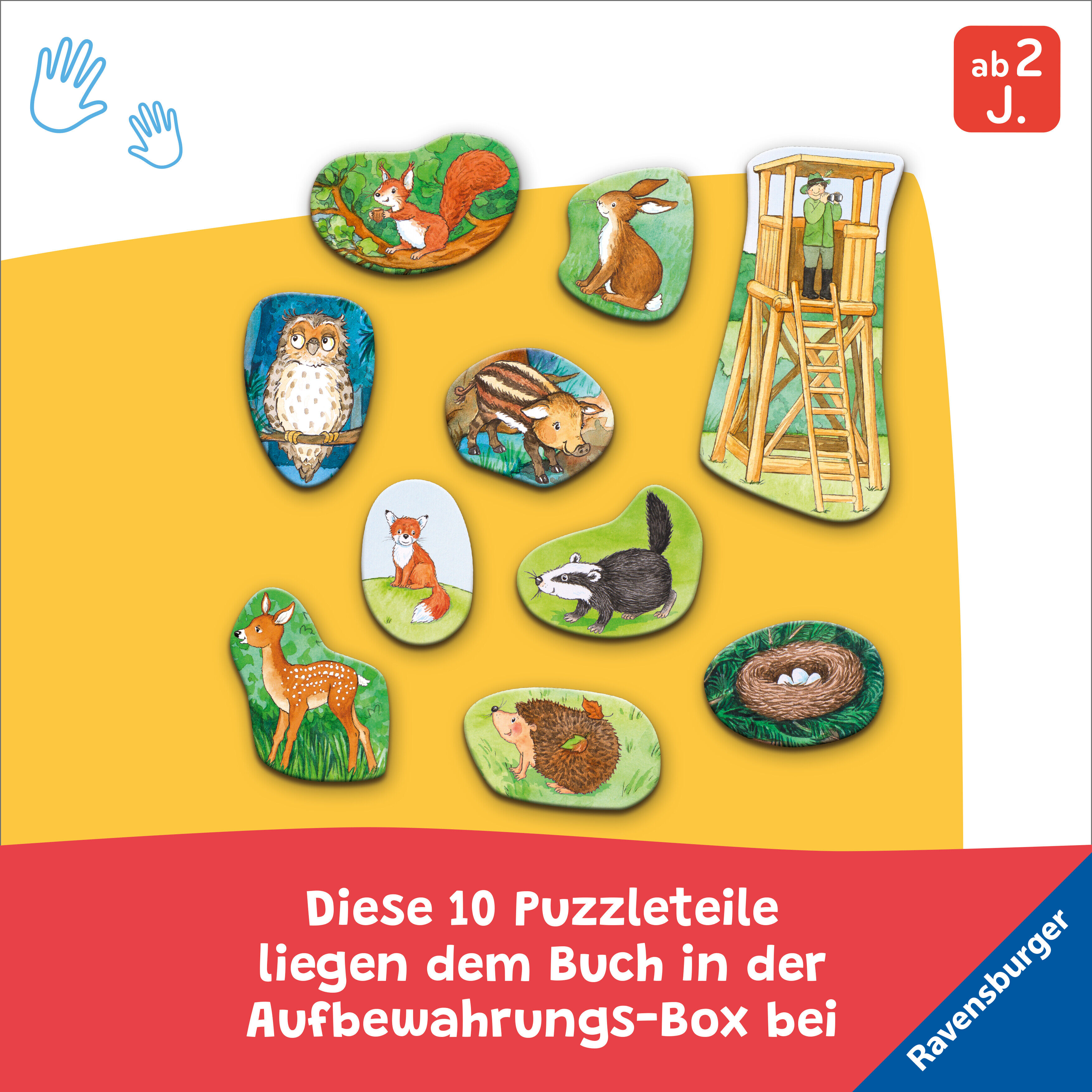 Großer Puzzlespaß für kleine Hände Entdecke den Wald und verbringe einen Tag zusammen mit Lina und Tom. Zehn stabile Puzzleteile laden zum Zuordnen und Einsetzen ein: Der Igel sitzt im Gras vor dem Waldkindergarten und das Eichhörnchen auf dem Baum, um dort se...