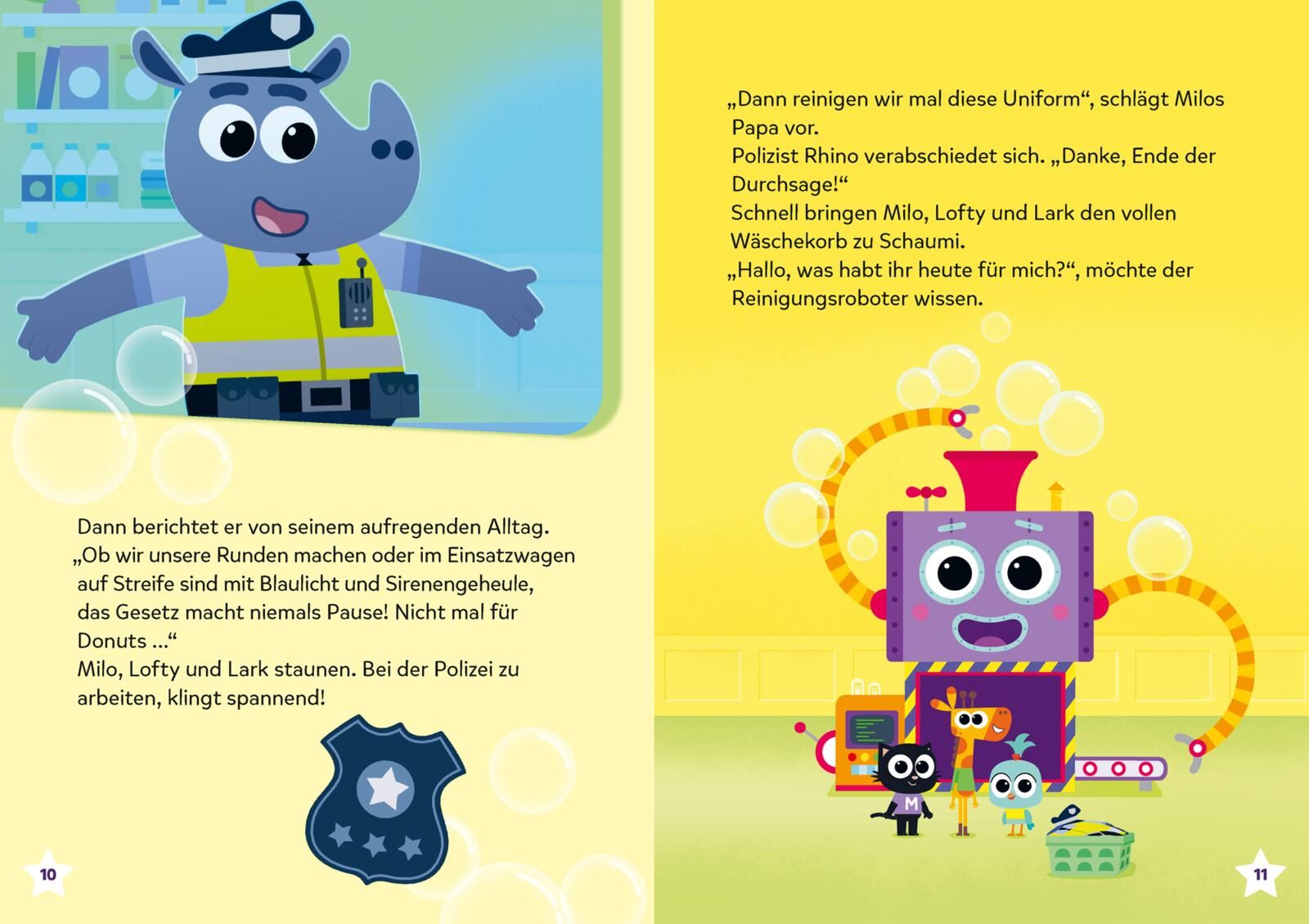Mit Kater Milo die Welt der Berufe entdecken ein Vorlesebuch voller Abenteuer! Kater Milo und seine Freunde Lofty und Lark sind neugierig auf die spannende Welt der Berufe. Gemeinsam besuchen sie die Feuerwehr, helfen der Polizei, erkunden eine Weltraumstatio...