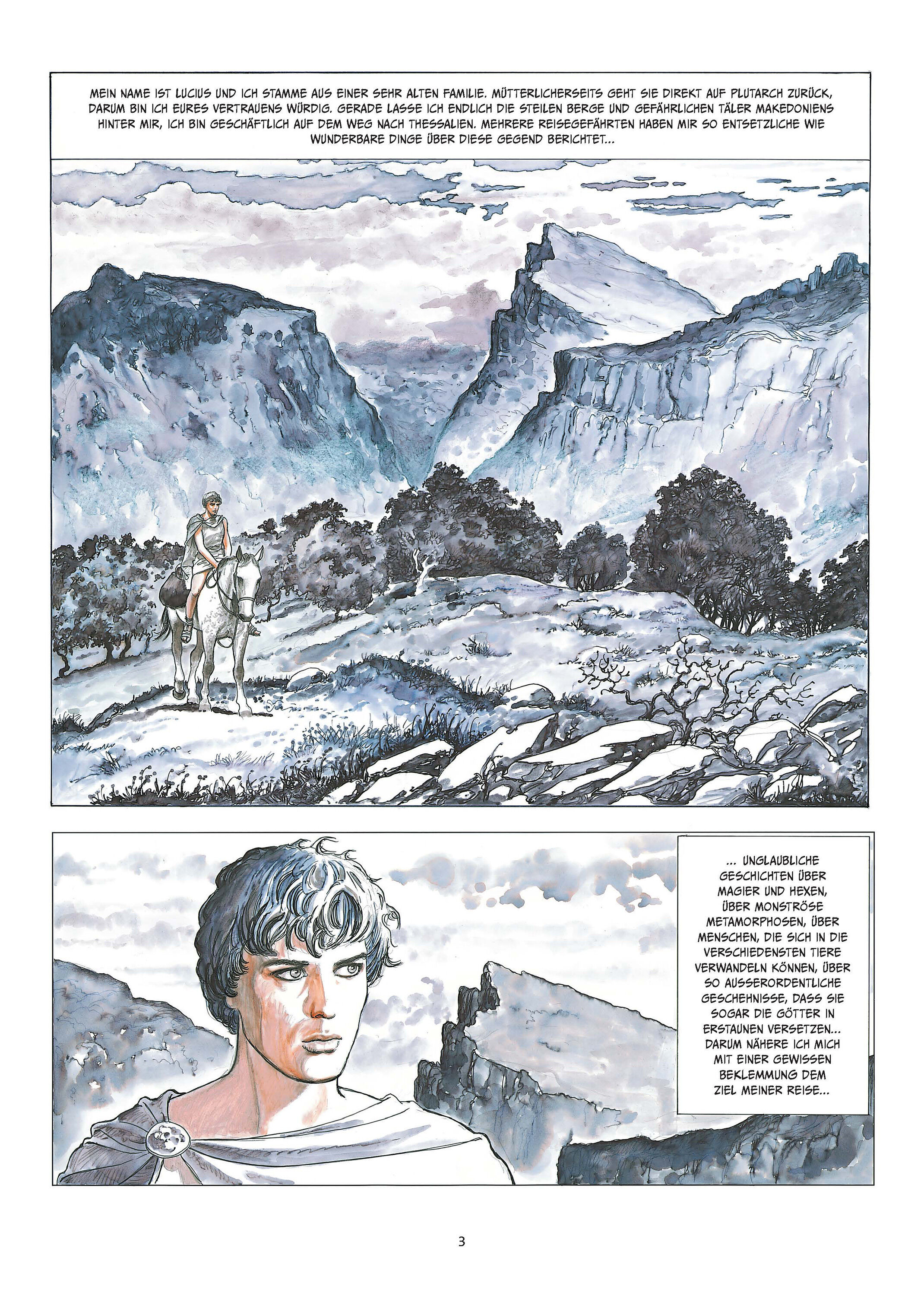 Auf einer Geschäftsreise nach Thessalien gerät der junge Lucius aus Neugierde an Hexerei in eine peinliche Situation: Er wird in einen Esel verwandelt. Bevor er zurückverwandelt werden kann, kommt er vom Regen in die Traufe und wird von Räubern entführt und al...