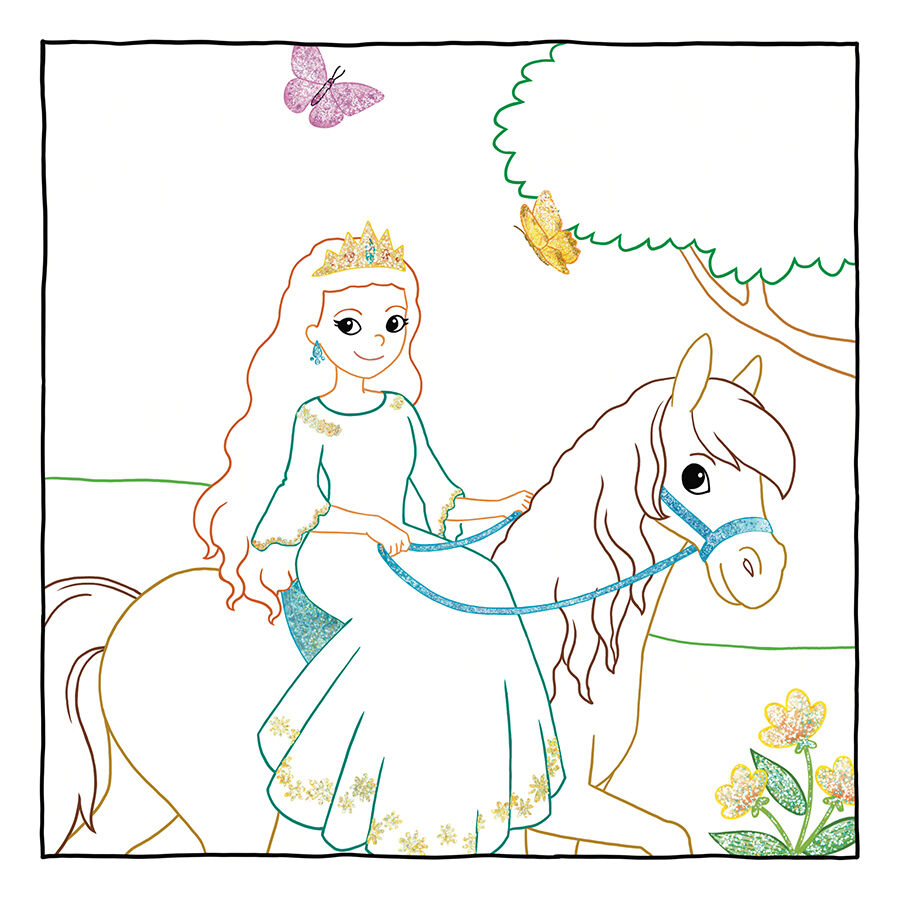 Glitzer-Malbuch mit überraschendem Wow-Effekt! Wie von Zauberhand erscheinen beim Ausmalen der liebevoll gestalteten Bilder verborgene Muster und Motive . Die 24 bezaubernden Ausmalbilder begeistern alle kleinen Prinzessinnen und Prinzen: Eine edle Prinzessin...