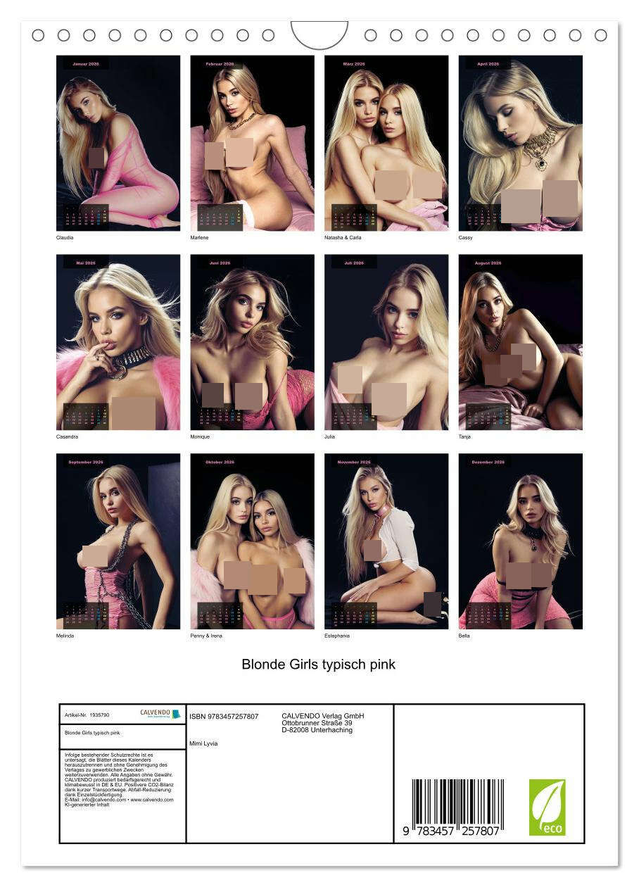 Blonde Girls typisch pink (Wandkalender 2026 DIN A4 hoch), CALVENDO Monatskalender