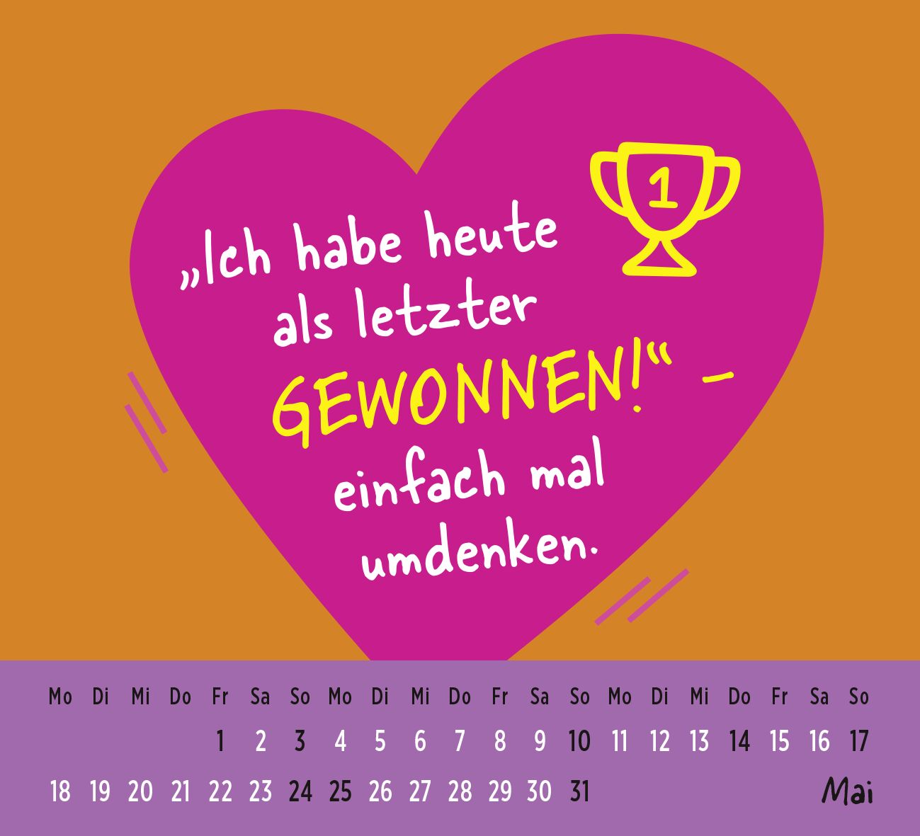 Mini-Kalender 2026 mit lustigen und motivierenden Sprüchen für jeden Monat Dieser kleine Sprüche-Kalender verbreitet gute Laune mit witzigen Zitaten. Ob im Büro oder im Homeoffice: Dank seines handlichen Formats passt er auf jeden Schreibtisch. Auf den Rückse...