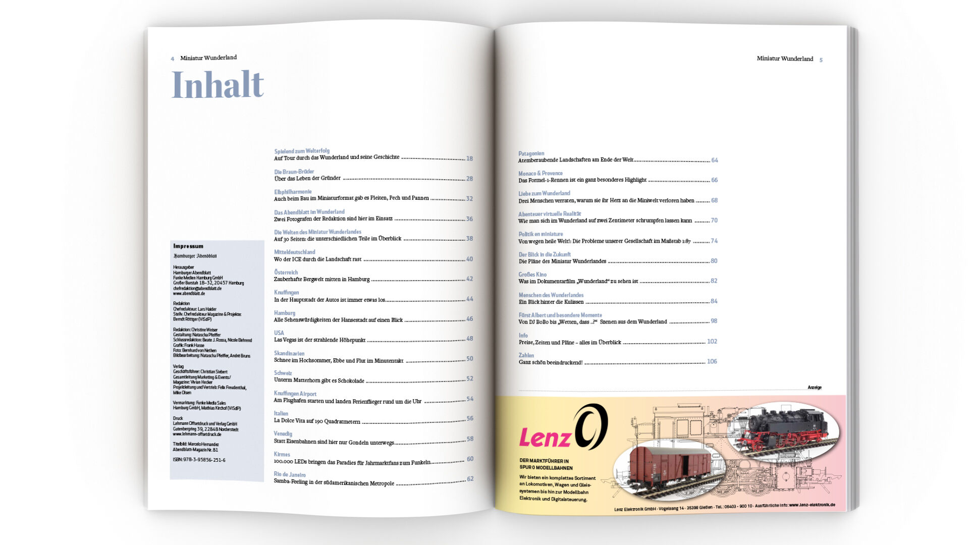 In der zweiten Ausgabe des exklusiven Magazins des Hamburger Abendblatts entdecken Sie alles rund um die faszinierendste Attraktion Deutschlands und die größte Modellbahnanlage der Welt. Das Miniatur Wunderland zieht jährlich über 1,5 Millionen Besucher aus de...