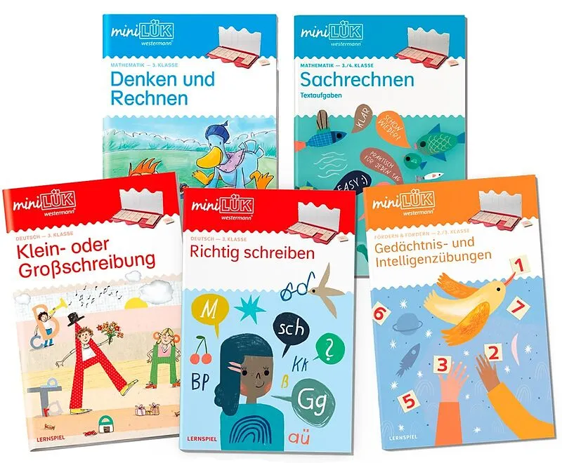 Sicher durch die 3. Klasse mit miniLÜK Mit diesem Paket trainieren Kinder gezielt die wichtigsten Lerninhalte der dritten Klasse. Die fünf enthaltenen Hefte fördern Kompetenzen in Sprache, Mathematik und Konzentration methodisch durchdacht und kindgerecht auf...