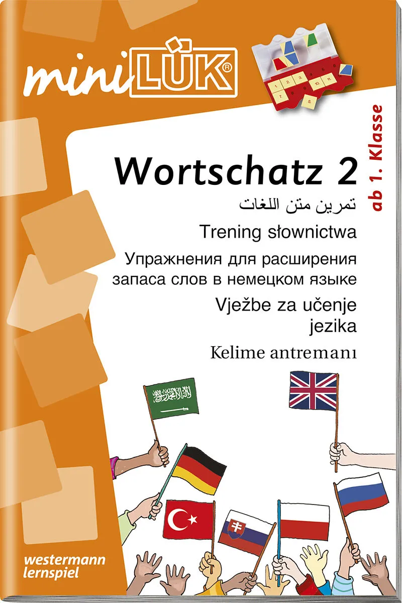 Wortschatztraining in Begegnungssprachen mit themenorientierten Wortfeldern. Das miniLÜK-Heft " Wortschatz 2 " enthält einfache Wortschatzübungen sowohl für Kinder und Jugendliche als auch Erwachsene zu Themen aus dem Alltag in den Begegnungssprachen Deutsch, ...
