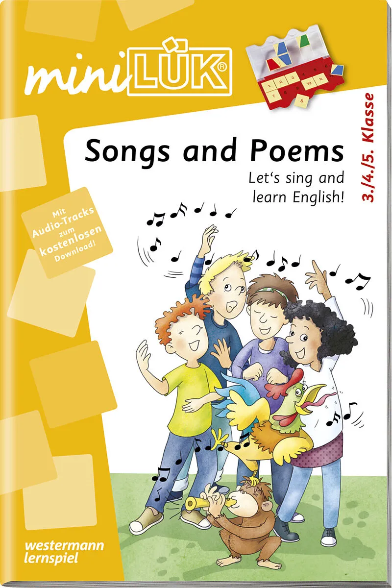 Let's sing and learn English und zwar mit dem miniLÜK-Übungsheft "Songs and Poems" . Beim Mitsingen und Nachsprechen prägen sich Wörter und Redewendungen besonders gut ein. Passende Aufgabenformate nach dem typischen LÜK-Prinzip unterstützen dies zusätzlich u...