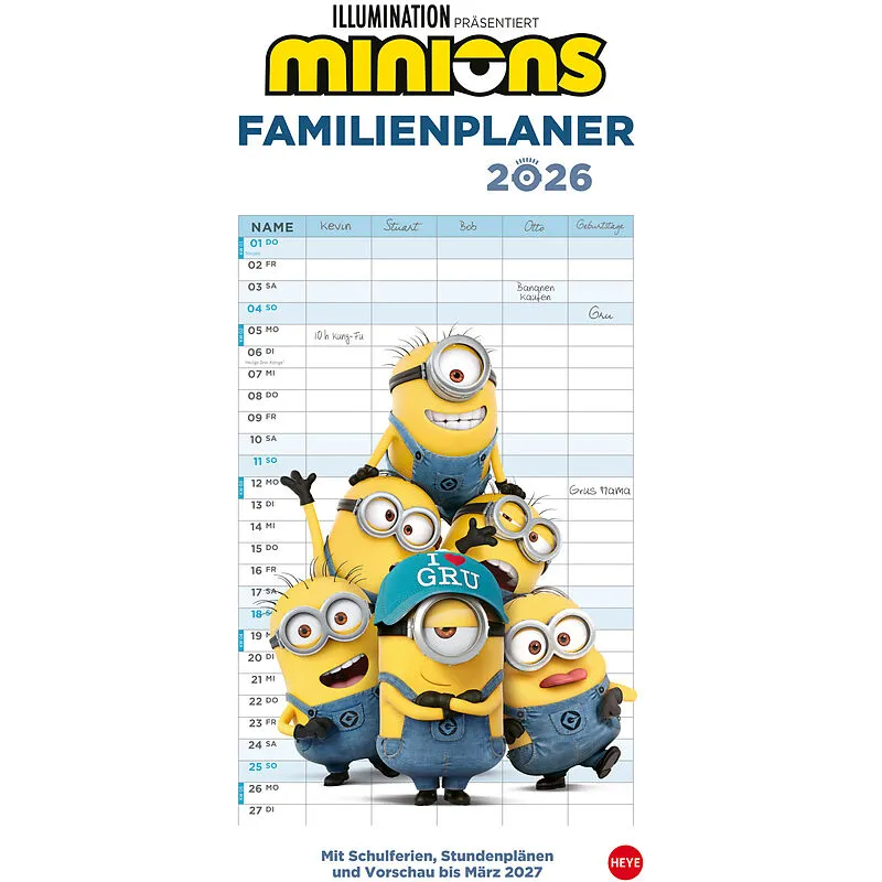 - Gut geplant auf Superschurken-Suche gehen: Der große Minion-Familienkalender 2026 mit 5 Spalten - Klein, gelb, tolpatschig, und supersüß: Wand-Terminkalender mit Bildern aus den Original-Filmen - Immer wissen, wann Zeit für das nächste Abenteuer ist: Wandkal...