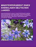 Klappentext Quelle: Wikipedia. Seiten: 197. Kapitel: Ministerpräsident (Anhalt), Ministerpräsident (Baden), Ministerpräsident (Braunschweig), Ministerpräsident (Mecklenburg bis 1945), Ministerpräsident (Oldenburg), Ministerpräsident (Preußen), Ministerpräsiden...