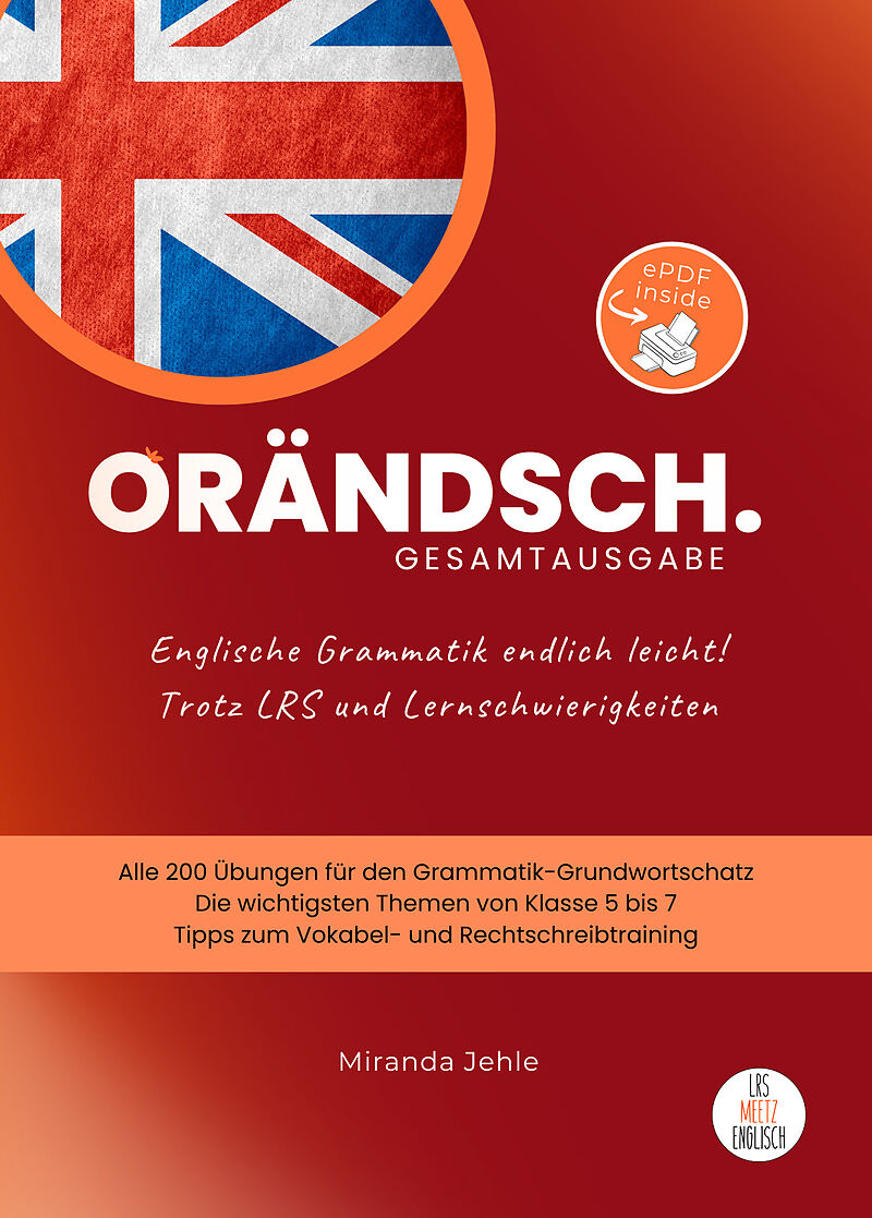 "Ich unterstütze Kinder mit LRS in Englisch und bin von Orändsch begeistert! Die Grundlagengrammatik ist so aufgebaut, wie ich mir das für Kinder mit Förderbedarf vorstelle: klar, übersichtlich, kleinschrittig. Ohne ablenkende Elemente und mit der Konzentration auf das Wesentliche und vielen Übungen zum Automatisieren. So haben Kinder mit großen Lücken und Schwierigkeiten beim Erlernen der englischen Sprache endlich einen Ansatzpunkt! Eltern, die ich in meinem Elternclub unterstütze, finden die Anwendung praktisch, einfach und sehen endlich Erfolge. Ich bin sehr froh, dass es jetzt auch einzelne Workbooks gibt. Ich kann das Material unbedingt weiterempfehlen, denn damit wird das Kind die wichtigen Grundlagen der englischen Sprache endlich meistern!"