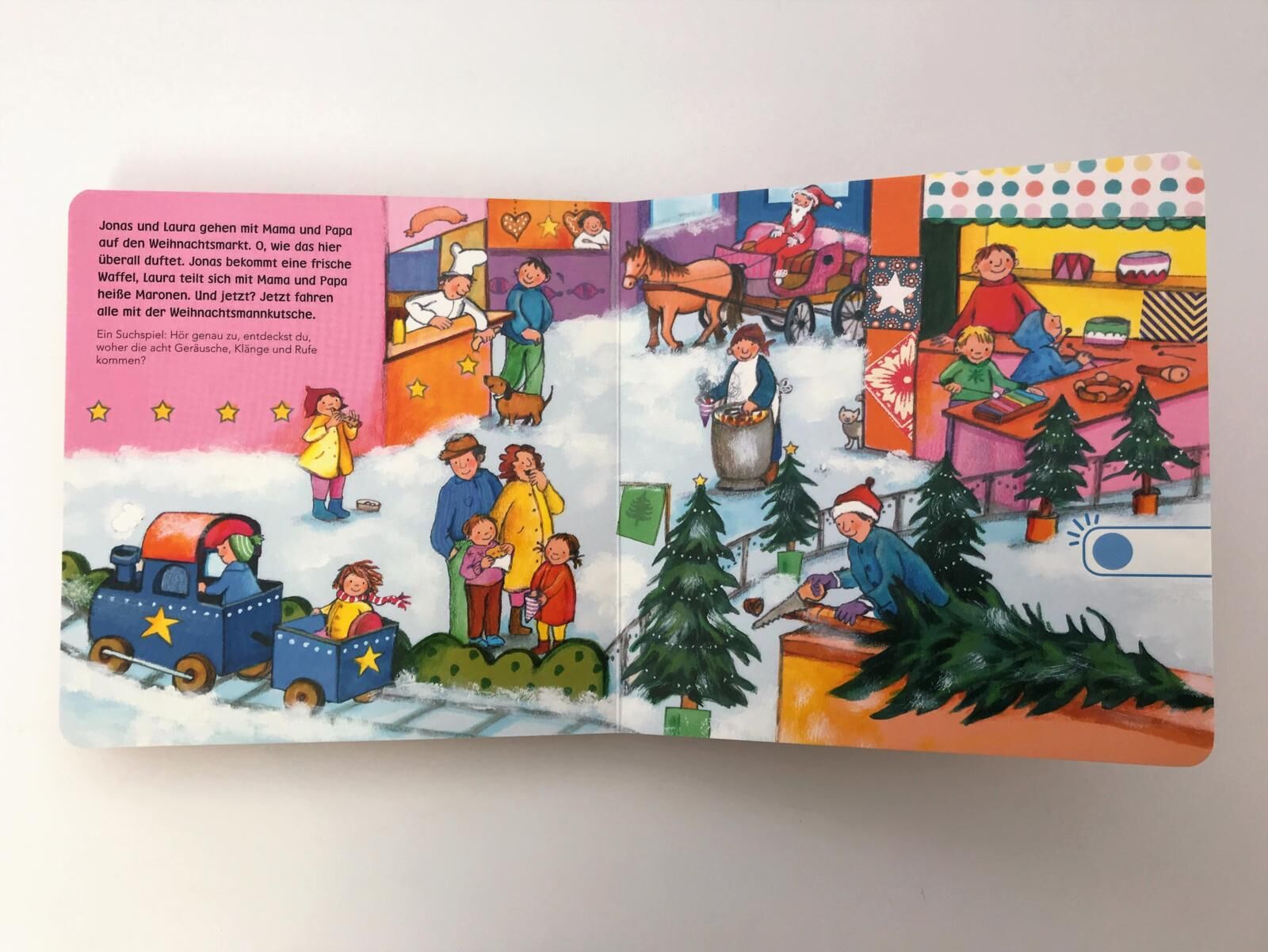 Dieses Weihnachts-Hör Mal ist ein wahrer Alleskönner. Schon vorn auf dem Buch beginnt es hörbar und sichtbar stimmungsvoll: Zu den ersten Takten von "O Tannenbaum" erleuchten die Weihnachtsbaumkerzen. Auch zu "Schneeflöckchen, Weißröckchen", "Als ich bei mein...