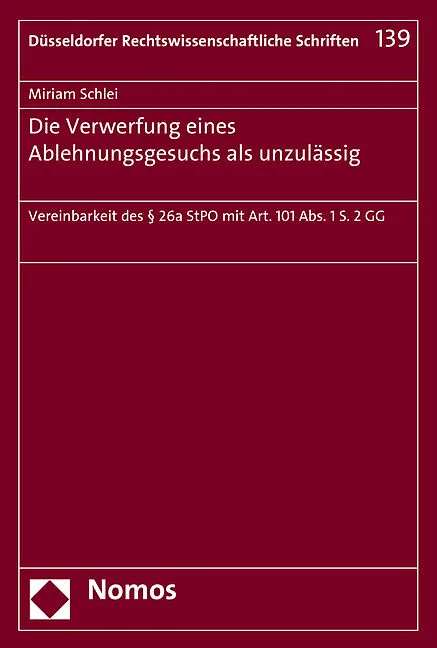 Das Werk schliet eine Lcke in der rechtswissenschaftlichen Aufarbeitung des 26a StPO, indem es grundlegend dessen Vereinbarkeit mit dem Recht auf den gesetzlichen Richter untersucht. Trotz der Kriterien, die das BVerfG aufgestellt hat, ist die Handhabung der V...