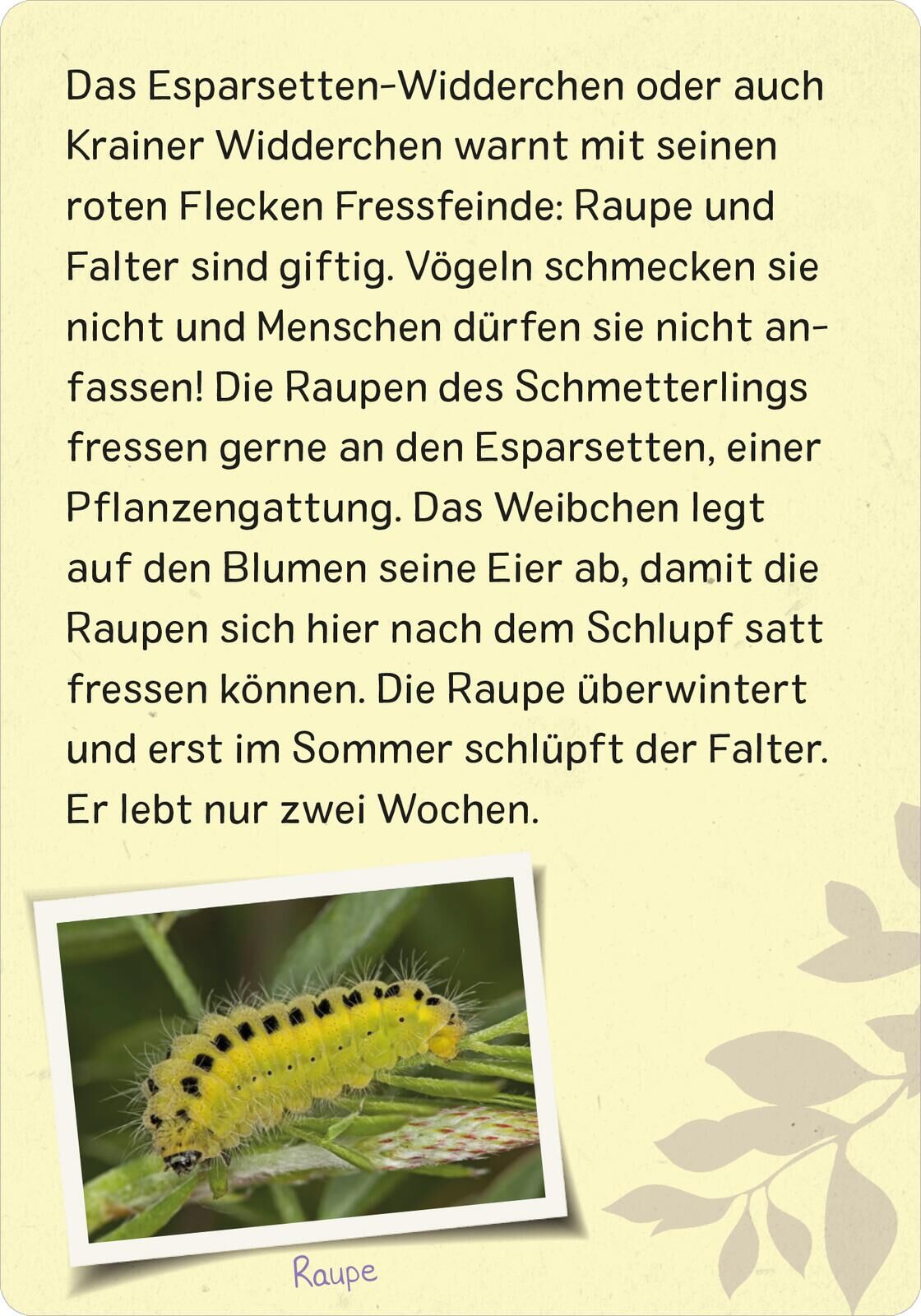 Entdecke die heimischen Krabbeltiere Die Naturforscher-Box beinhaltet 50 Karten. Auf jeder Karte wird ein Insekt oder eine Spinne vorgestellt mit Foto, Steckbrief und zusätzlichen interessanten Informationen, wie z. B. Aussehen, Fortpflanzung, Lebensweisen, V...