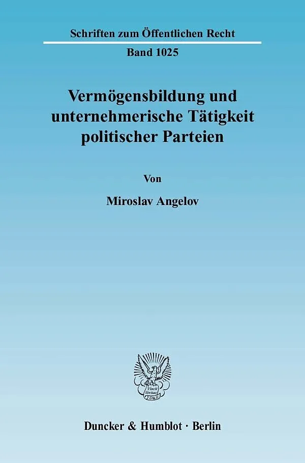 Die vorliegende Arbeit ist aktuellen, aber bisher wenig erforschten Rechtsproblemen der Parteienfinanzierung gewidmet. Ausgehend von der Hypothese, dass Vermögensbildung und unternehmerische Tätigkeit für Parteien sowohl wichtige Einnahmequellen als auch polit...