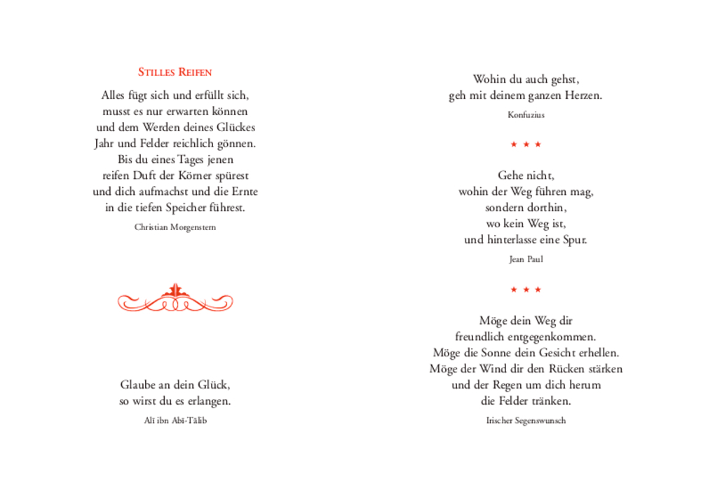 Der echte rote Faden ist das Markenzeichen dieser ausgefallenen Geschenkbuchreihe. Mit den schönsten Gedichten und Gedanken, gepflegtem Design und edlem Papier ist dieses von Hand gebundene Buch ein liebevolles und zugleich preiswertes Geschenk zu vielen Geleg...
